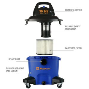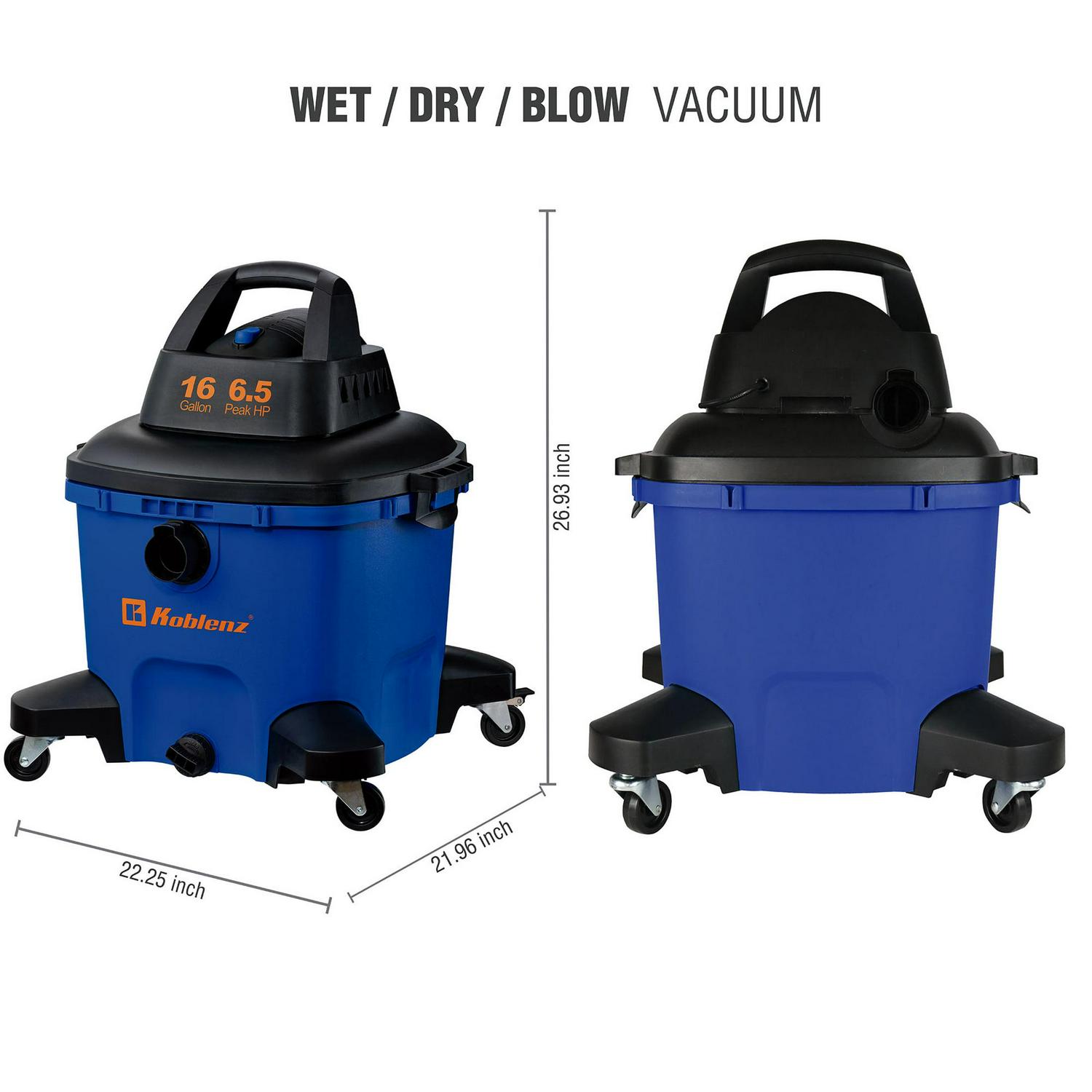 The KOBLENZ Wet Dry Blow Vacuum 16 Gallon, 6.5 Peak HP is a top-of-the-line cleaning tool that offers both power and versatility. Its 16-gallon capacity and 6.5 peak horsepower motor make it easy to clean up even the toughest messes, while its ability to blow air as well as suck it in allows for quick and effective drying of wet surfaces. The vacuum’s large wheels and handle also make it easy to transport from room to room or from job site to job site. Whether you’re cleaning up after a construction project, tackling a messy workshop, or simply need a powerful vacuum for your home, the KOBLENZ Wet Dry Blow Vacuum 16 Gallon, 6.5 Peak HP is an excellent choice.