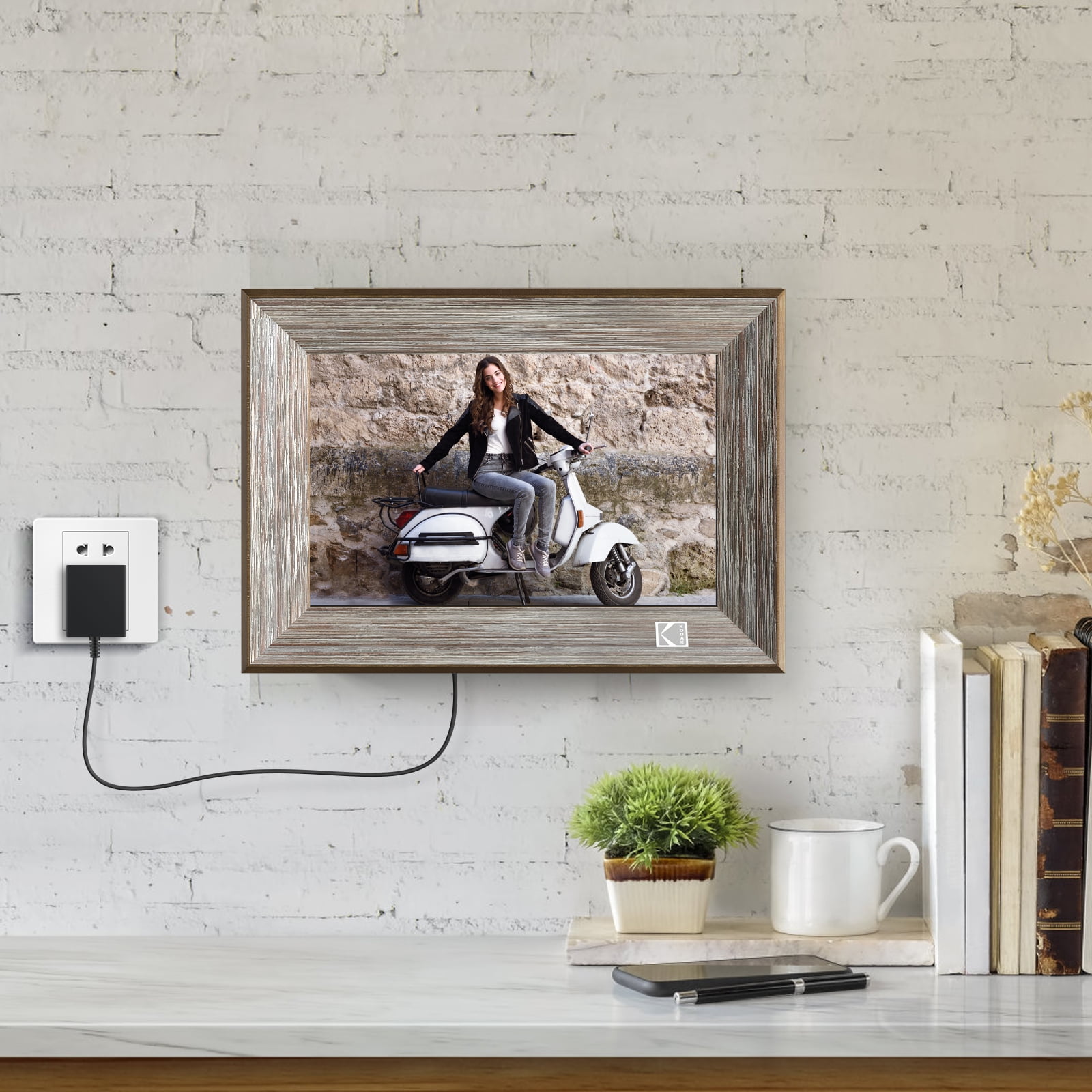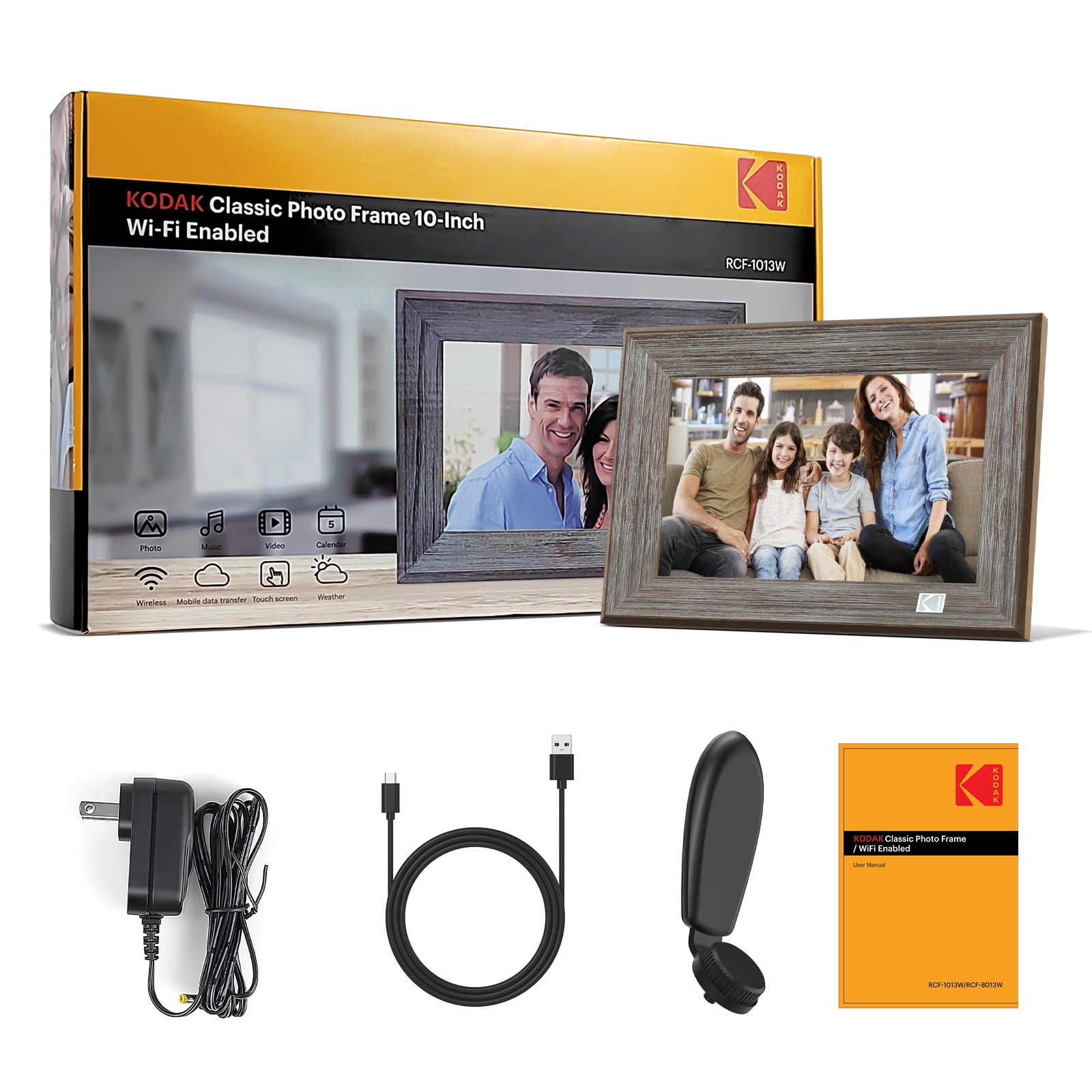 Kodak 10.1-inch Digital Photo Frame, Touchscreen, Wi-Fi, Solid Wood, Gray
