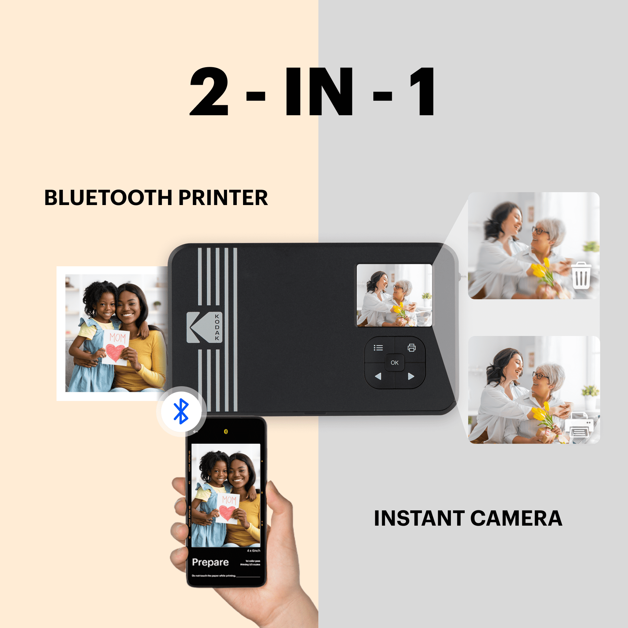 Two Photo Types: It is possible to print both bordered and borderless pictures with the Kodak Mini Shot 3 Retro photo printer. With this instant camera, you can create lasting memories by writing down your memories in the border type. You can print the borderless type of photo if you want to have them in a larger size. Low Photo Cost: Why pay more to print? Printing has never been easier with our Kodak Mini Shot 3 Retro instant digital camera. Photos are even half the cost if purchased in an instant digital camera bundle! Superior Photo Quality: The Kodak Mini Shot 3 Retro utilizes 4PASS technology, which allows you to print flawless photos in just a few seconds. As the photos are printed on layers of color and laminated, they are protected against fingerprints and water. Photos last over a 100 years! Instant Camera + Photo Printer: The Kodak Mini Shot 3 Retro is a digital camera with a built-in photo printer, so you can print your images or cancel them after you have taken them. With this instant digital camera, you can also print 3×3″ photos directly from the gallery of your mobile device via Bluetooth. Kodak Mini Shot 3 Retro is compatible with Apple iPhone, iPad & Android devices. Superior Photo Quality: The Kodak Mini Shot 3 Retro utilizes 4PASS technology, which allows you to print flawless photos in just a few seconds. As the photos are printed on layers of color and laminated, they are protected against fingerprints and water. Photos last over a 100 years! Kodak App: Download the KODAK Photo Printer application and print from anywhere at any time. With fun decorative features such as beauty, filters, frames, and more, you can use the app to express your photos. Our app will do the rest of the work for you!
