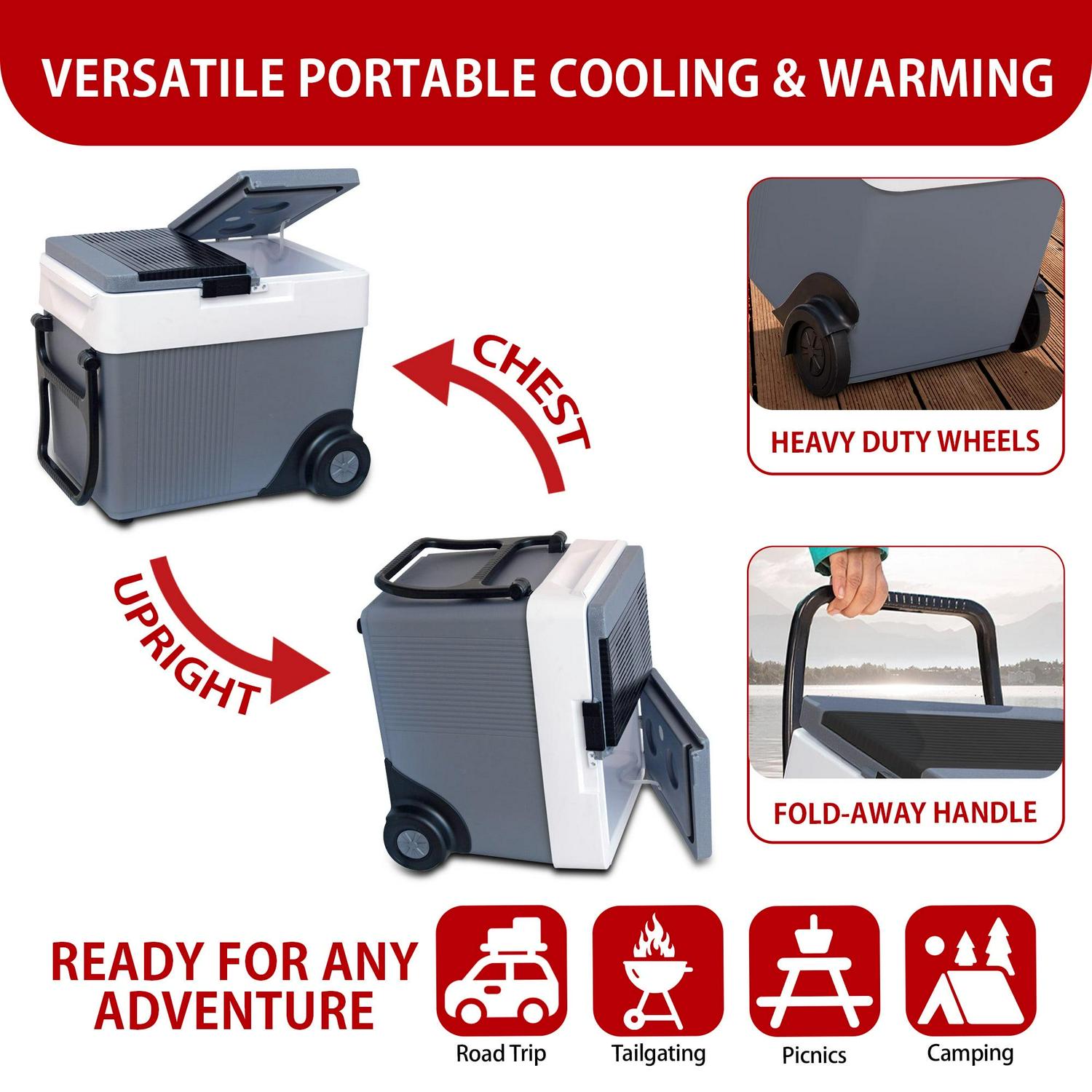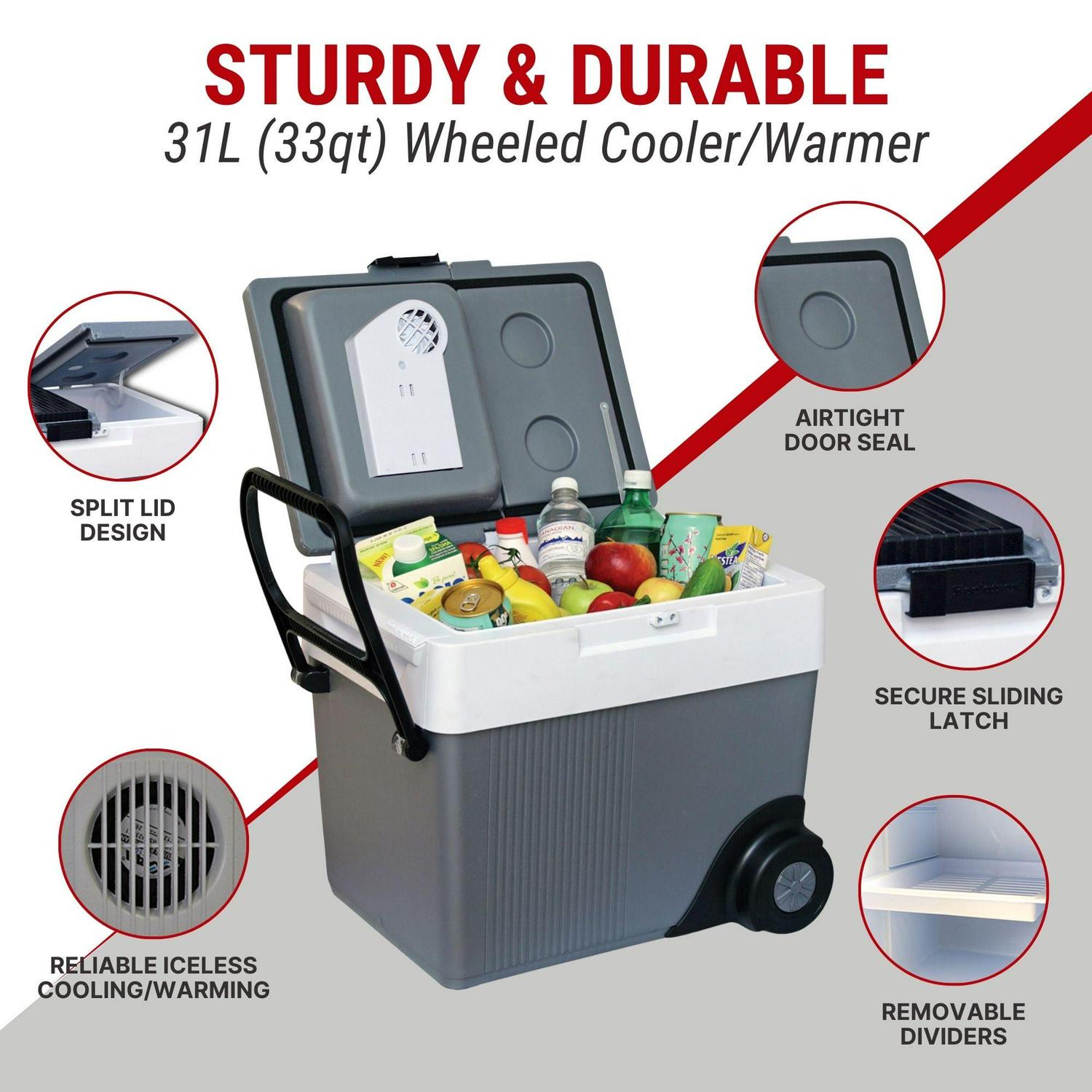 Koolatron Kargo Wheeler W65 Thermoelectric Iceless 12V Cooler Warmer, 31L / 33 Quart Capacity, Grey, For Camping, Travel, Truck, SUV, Car, Boat, RV, Trailer, Tailgating, Made in North America
