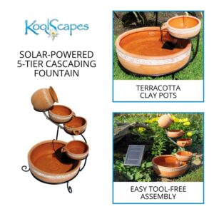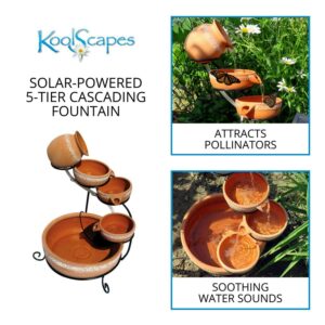 KoolScapes Solar-Powered 5-Tier Cascading Fountain- Finish, Brown
