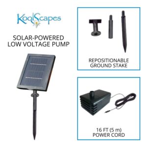 – RUNS ON SOLAR POWER The low voltage water pump is powered by a single solar panel so it requires no additional wiring or power source