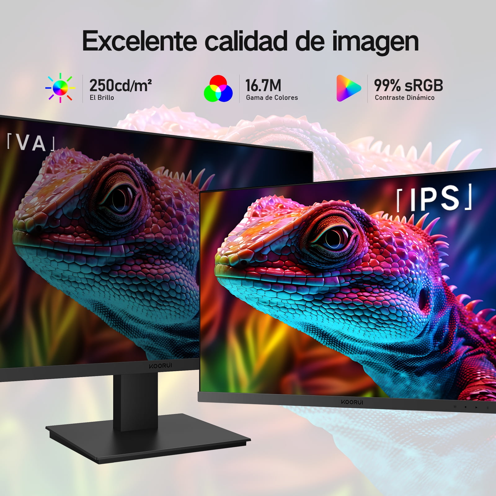 【Visual Enjoyment & Panoramic Viewing】This 27 inch monitor with IPS technology and three-sided ultra-thin bezel design gives you brilliant visuals and unforgettable quality, Besides, the 178° wide viewing angle of this monitor 27 inch allows you to enjoy a clear, sharp, and delicate images at any angle 【Reduce Eye Fatigue】Flicker-Free technology, Blue Light Filter, 99% SRGB (NTSC 72%) make the picture more realistic, the color is more saturated, 20 million dynamic contrast ratio and 250cd/㎡ (adjustable brightness) bring long-term visual comfort, Reduce eye fatigue 【Versatile Connectivity】PC monitor 27 provide video interfaces via HDMI and VGA ports. This computer monitor 27 inch is with 75Hz refresh rate (compatible with most normal graphics cards) and FHD 1920x1080p resolution. You can connect the 27 in monitor to Xbox, PC and laptops etc, transmitting high-quality images, any switch between office and entertainment 【Wall mount 】The 27 monitor stand can be quickly installed and dismantled, and supports 75*75mm stand, which provides great convenience for you to move and place the monitor. Tilt 5 degrees forward and 15 degrees back to give you the best viewing angle 【After-sales Guarantee】KOORUI committing to manufacturing monitors over 20 years, we can provide high-quality computer monitors and premium services, included 30 days money back, 6 months replacement, 3 years warranty. If you find any damage, malfunction or missing accessories, please feel free to contact us