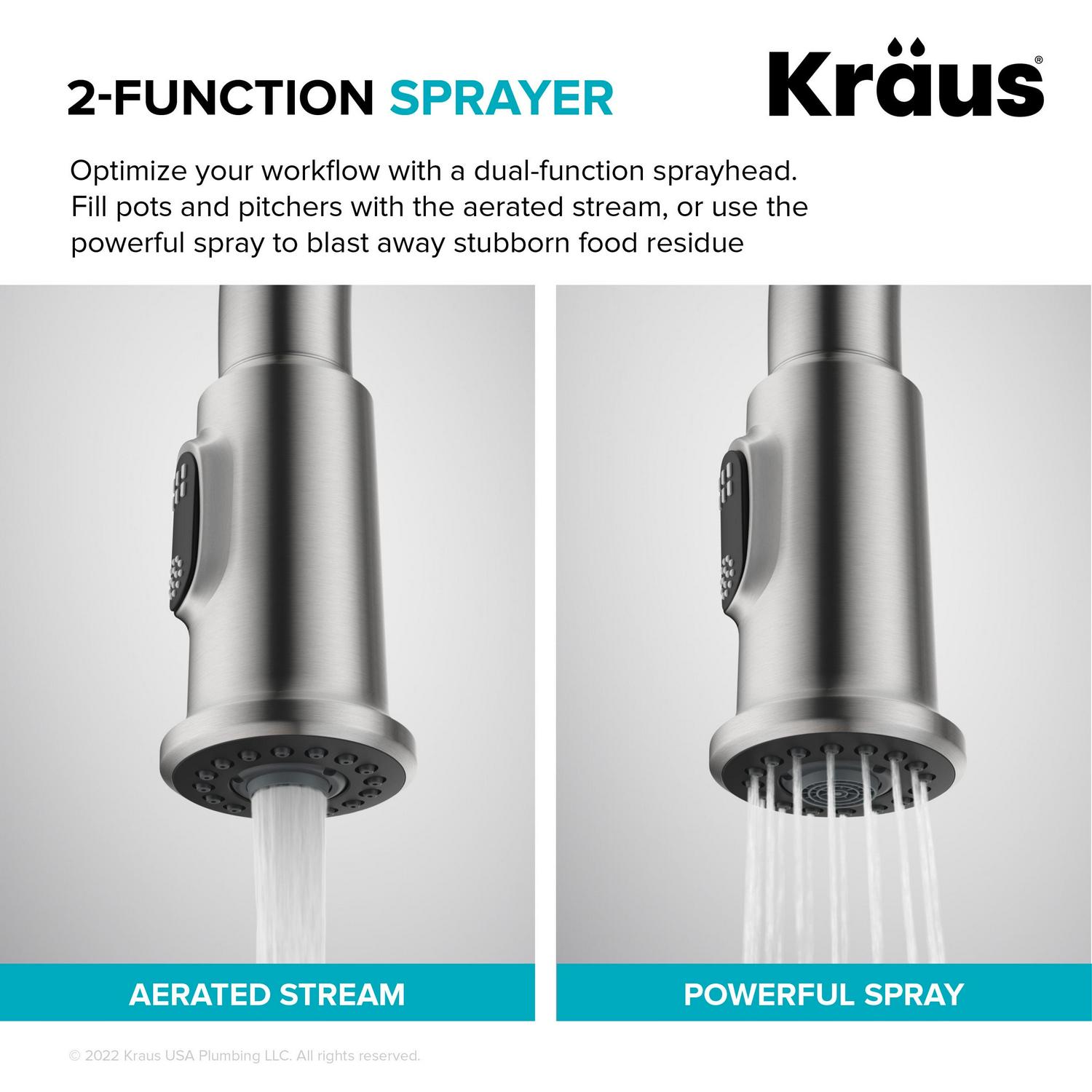 – Dual Function Sprayer: Switch between an aerated stream for everyday cleaning and a powerful spray for heavy-duty rinsing