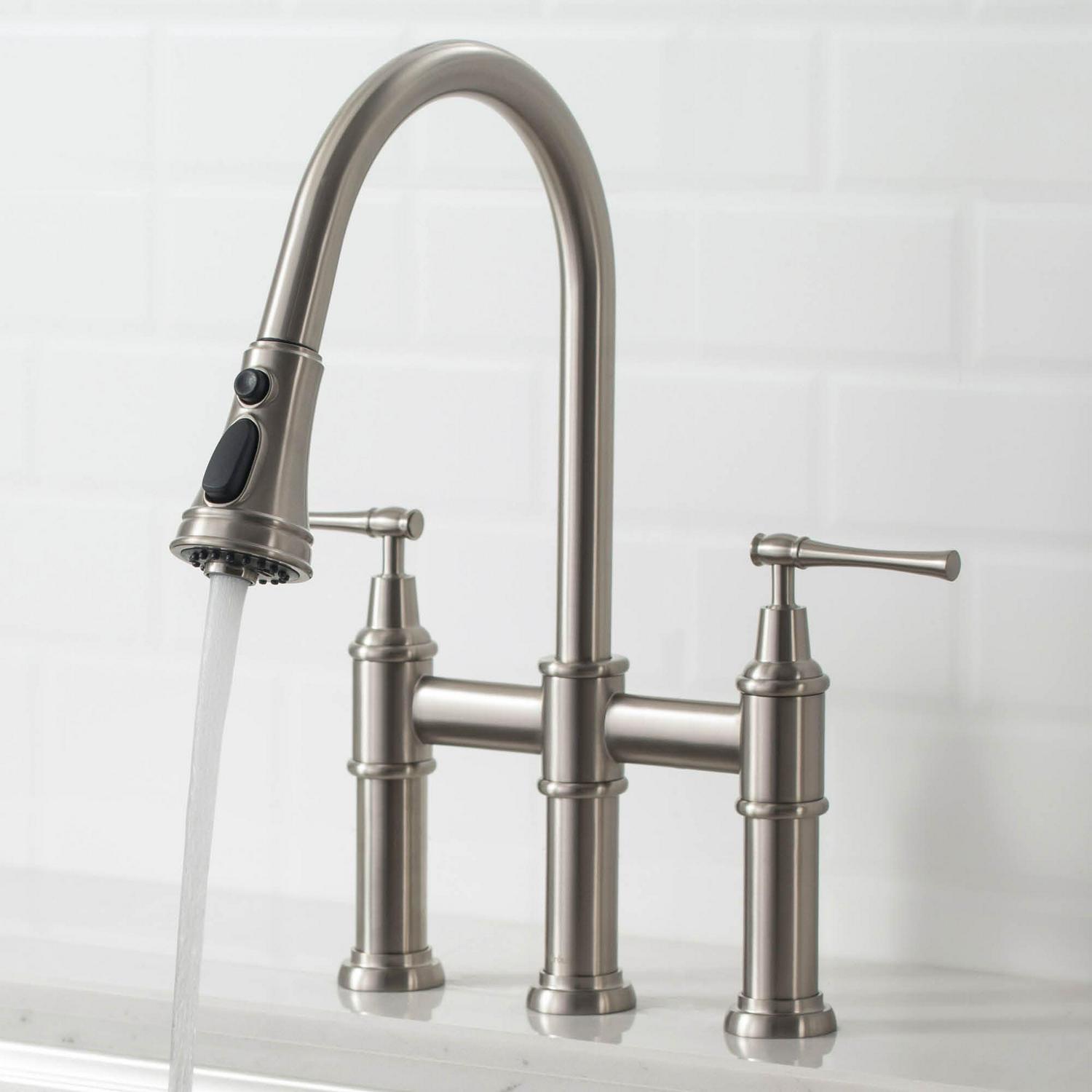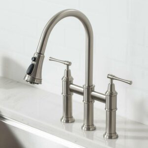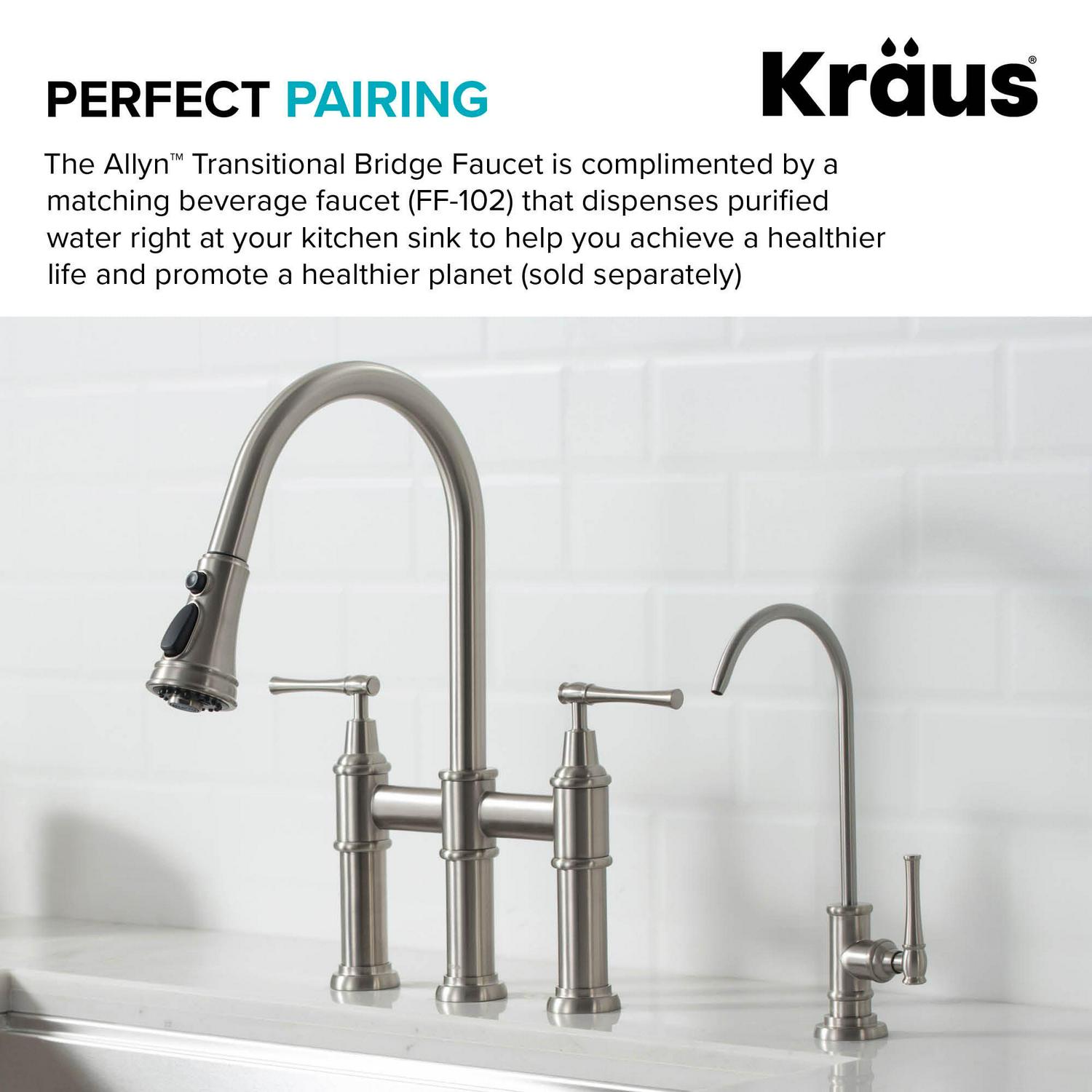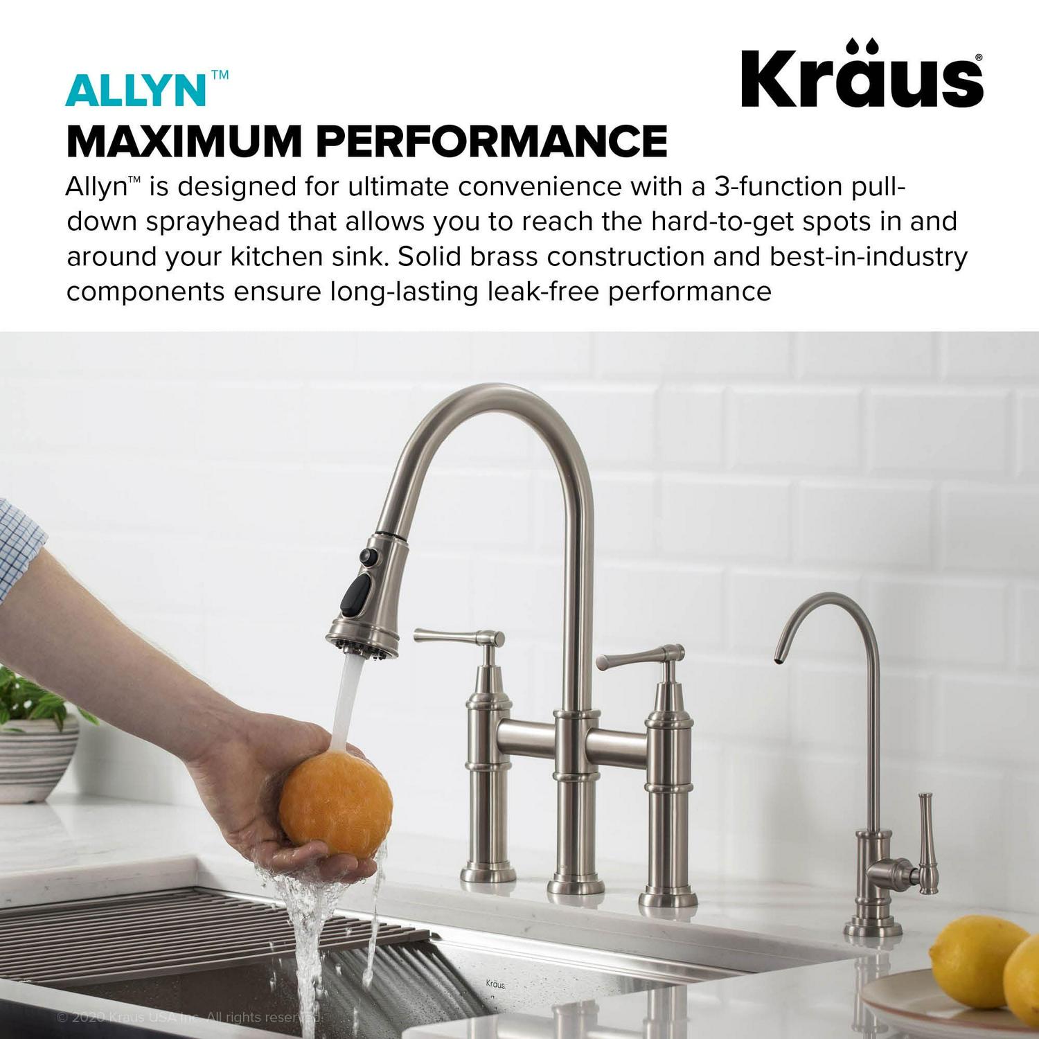 Kraus Allyna c Transitional Bridge Kitchen Faucet with Pull-Down Sprayhead in Spot Free Stainless Steel
