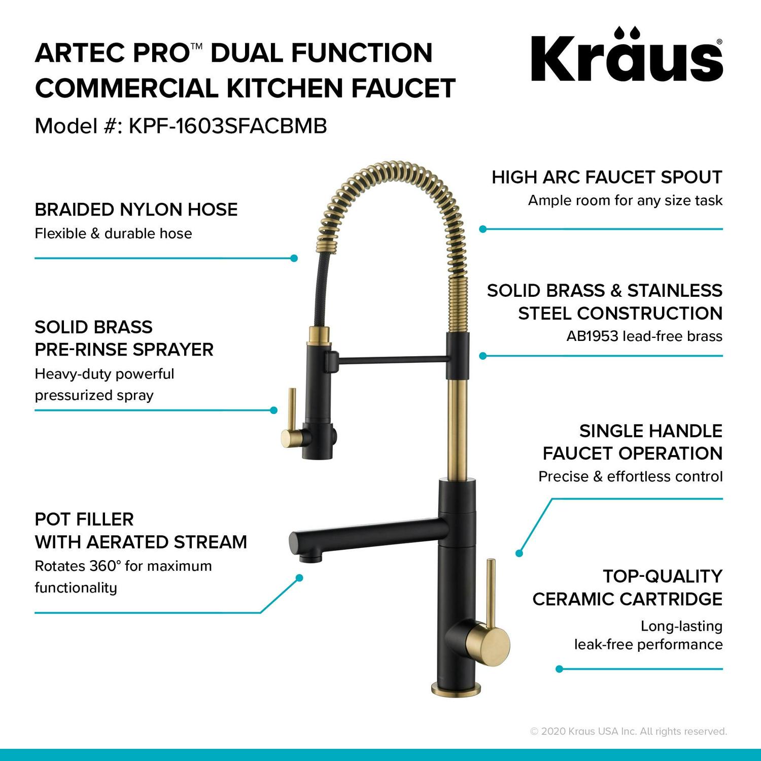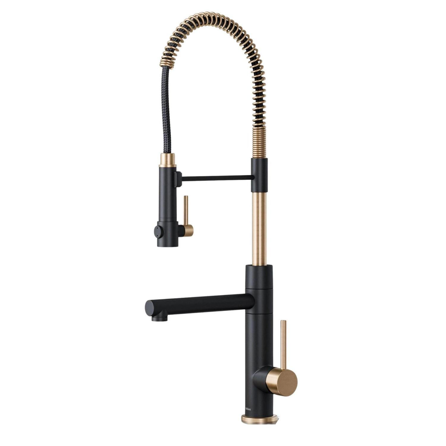 Kraus Artec Pro 2-Function Commercial Style Pre-Rinse Kitchen Faucet with Pull-Down Spring Spout and Pot Filler in Spot Free Antique Champagne Bronze/Matte Black