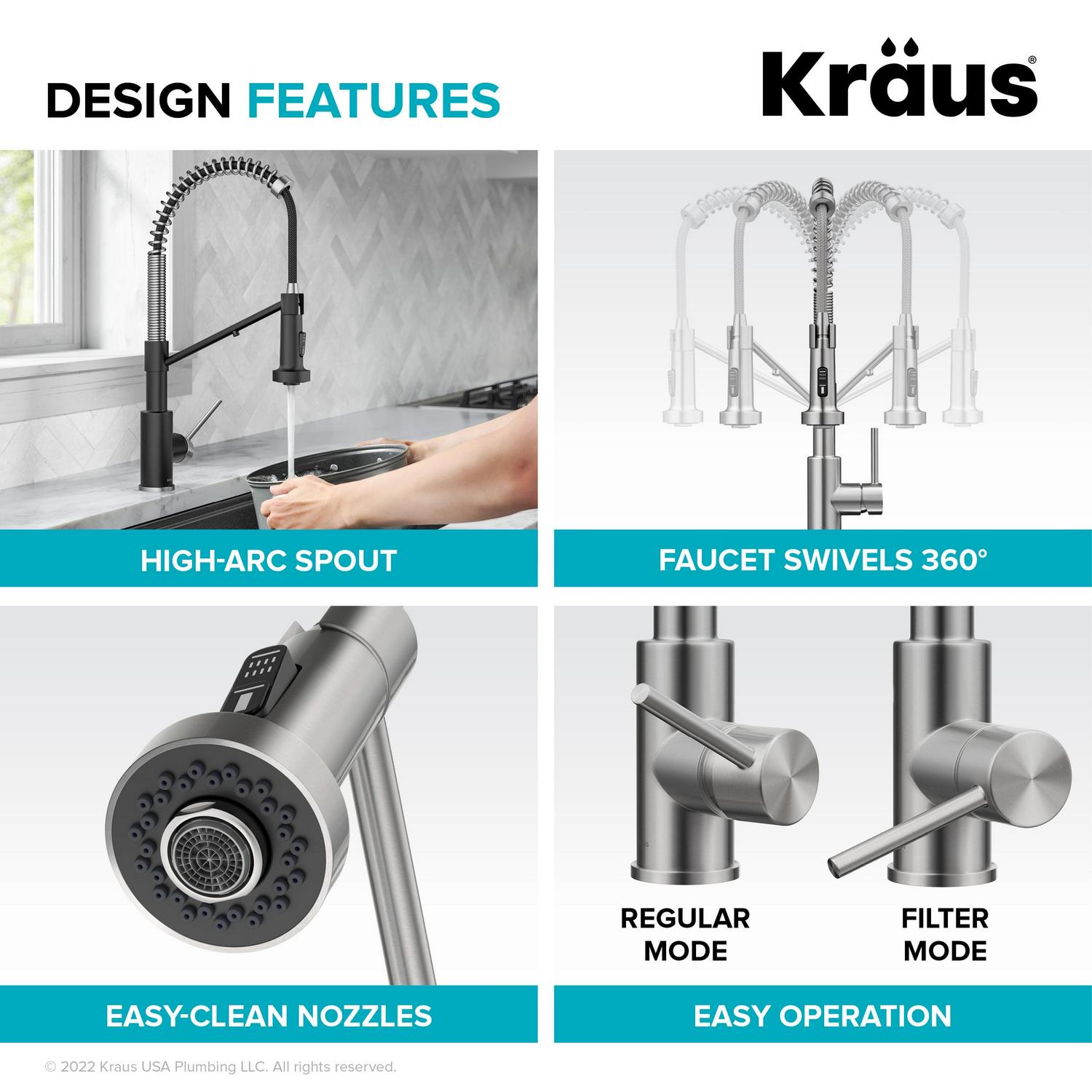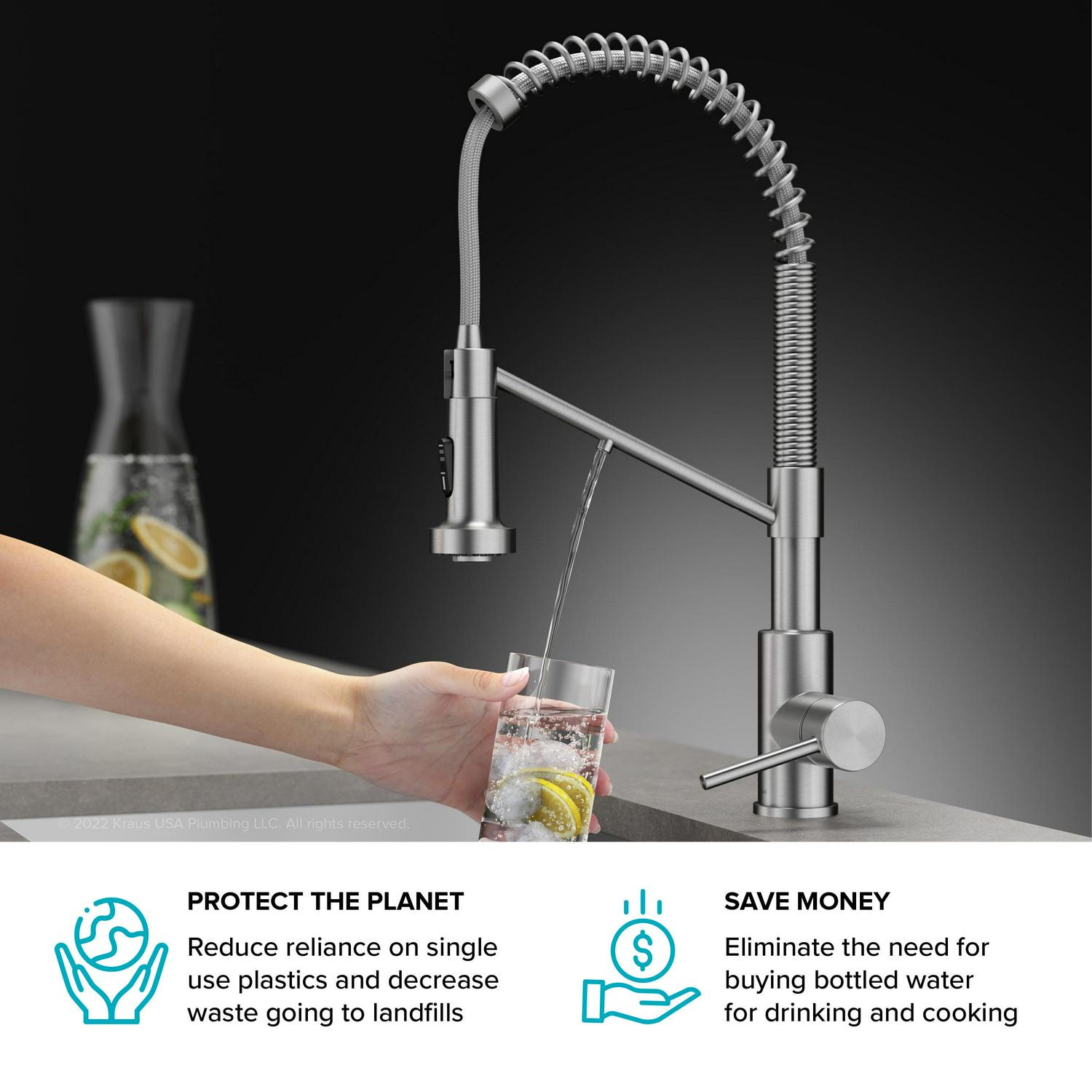 – RECOMMENDED FILTRATION SYSTEM: Kraus 2-Stage Carbon Block Under-Sink Water Filtration System FS-1000 (sold separately) that improves water quality by removing contaminants as small as 0.5 microns helps remove lead, select pharmaceuticals, VOCs, chlorine odor and taste, and other impurities