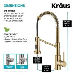 KRAUS Bolden 2-in-1 Commercial Style Pull-Down Single Handle Water Filter Kitchen Faucet for Reverse Osmosis or Water Filtration System in Brushed Brass
