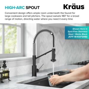 – HIGH-ARC SPOUT offers ample room underneath the faucet for oversized items like tall pitchers, swivels 360° for a full range of motion