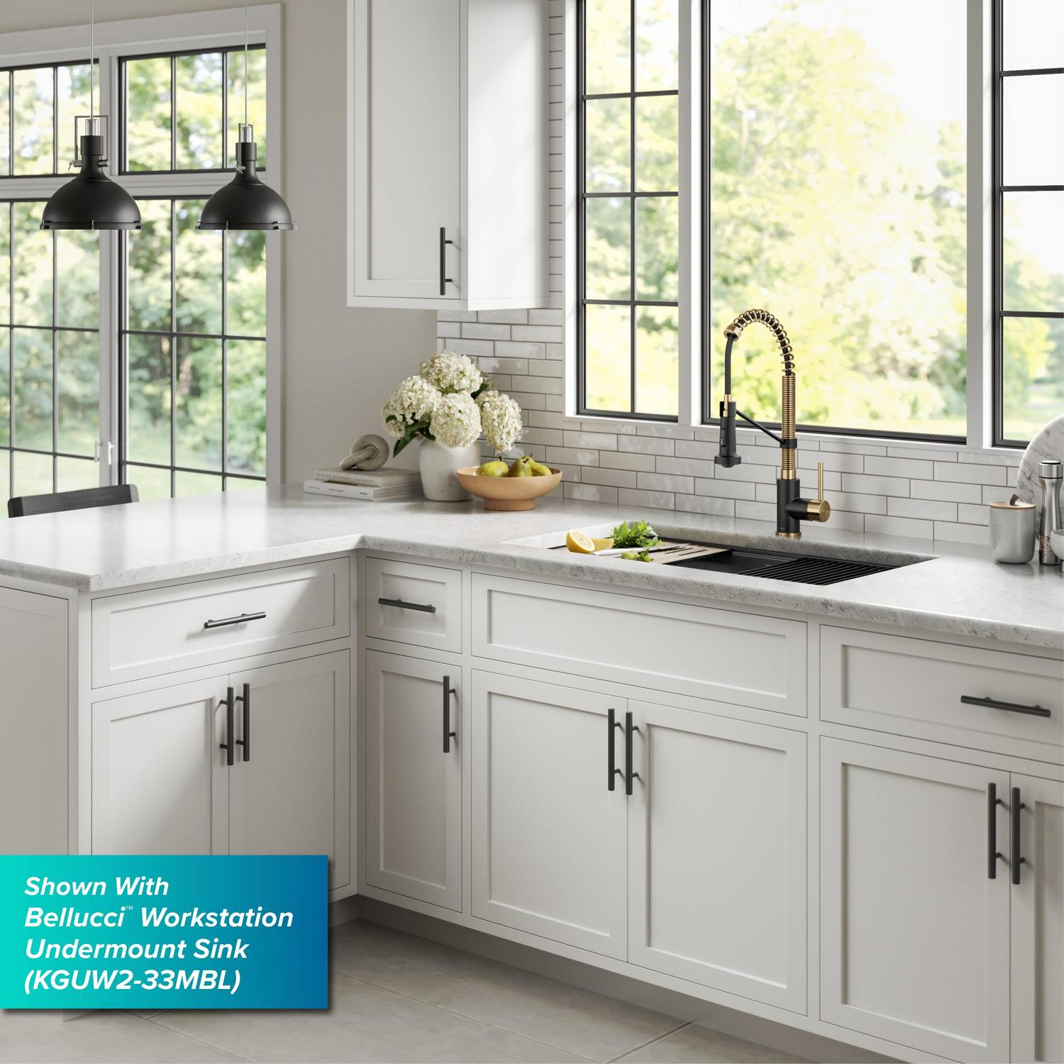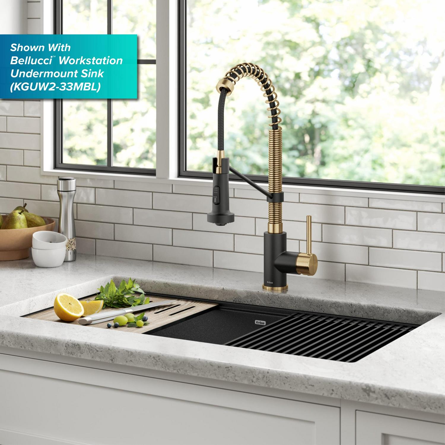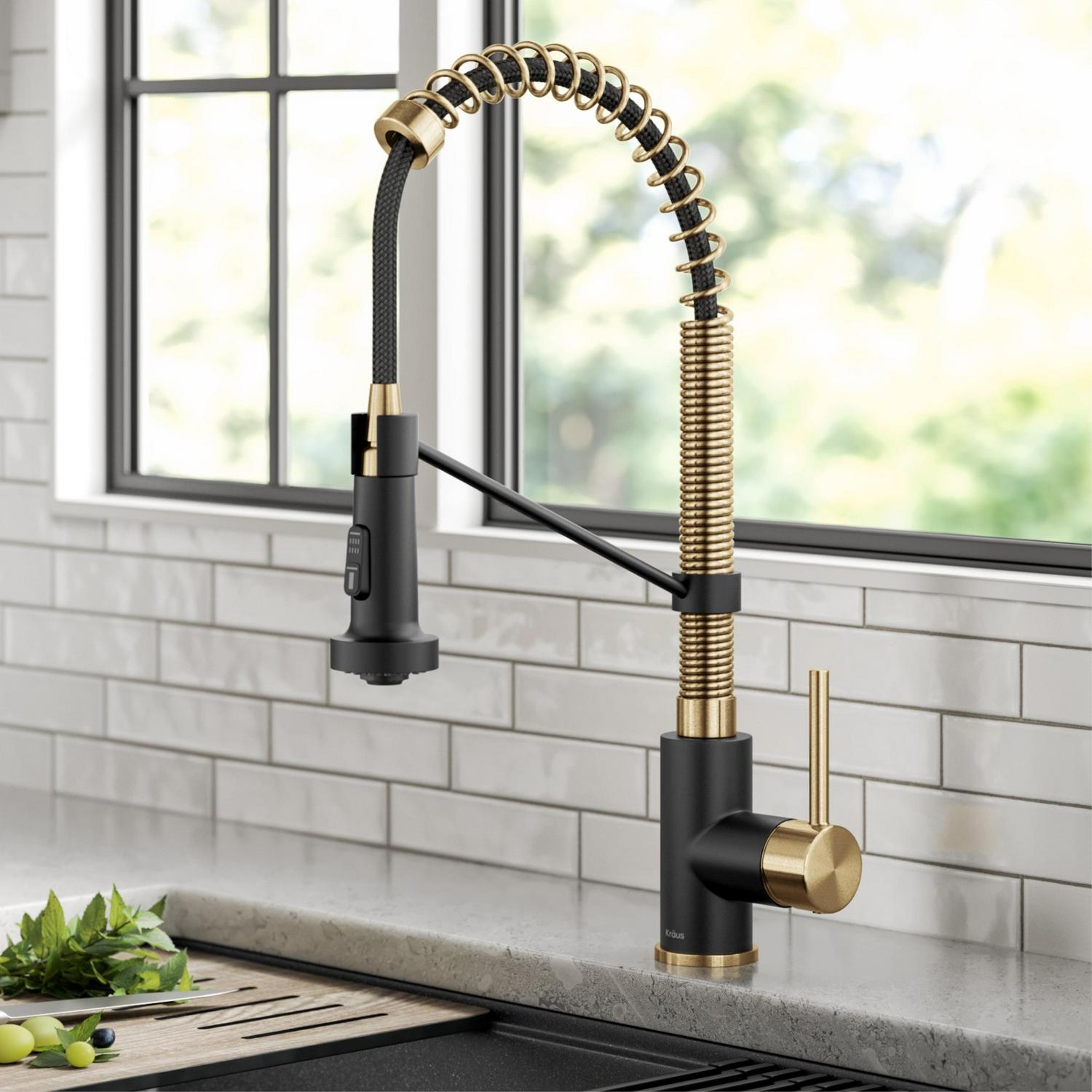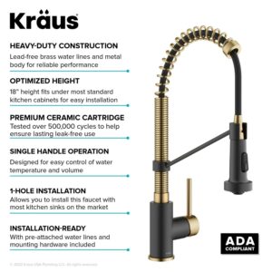 KRAUS Bolden Commercial Style Pull-Down Single Handle 18-Inch Kitchen Faucet in Brushed Brass/Matte Black