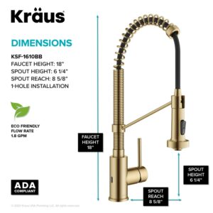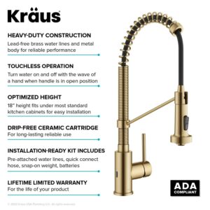 KRAUS Bolden Touchless Sensor Commercial Style Pull-Down Single Handle Kitchen Faucet in Brushed Brass