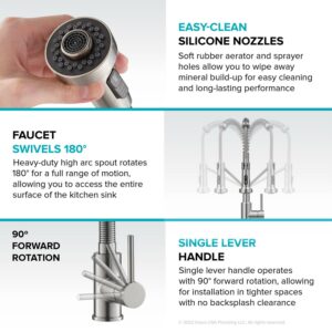 – DUAL FUNCTION SPRAYER: Switch between aerated stream for everyday cleaning and powerful spray for heavy-duty rinsing Independent docking arm swings to the side for easy access
