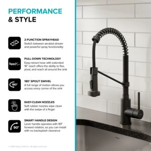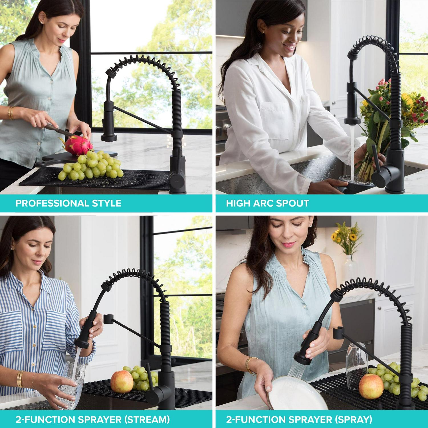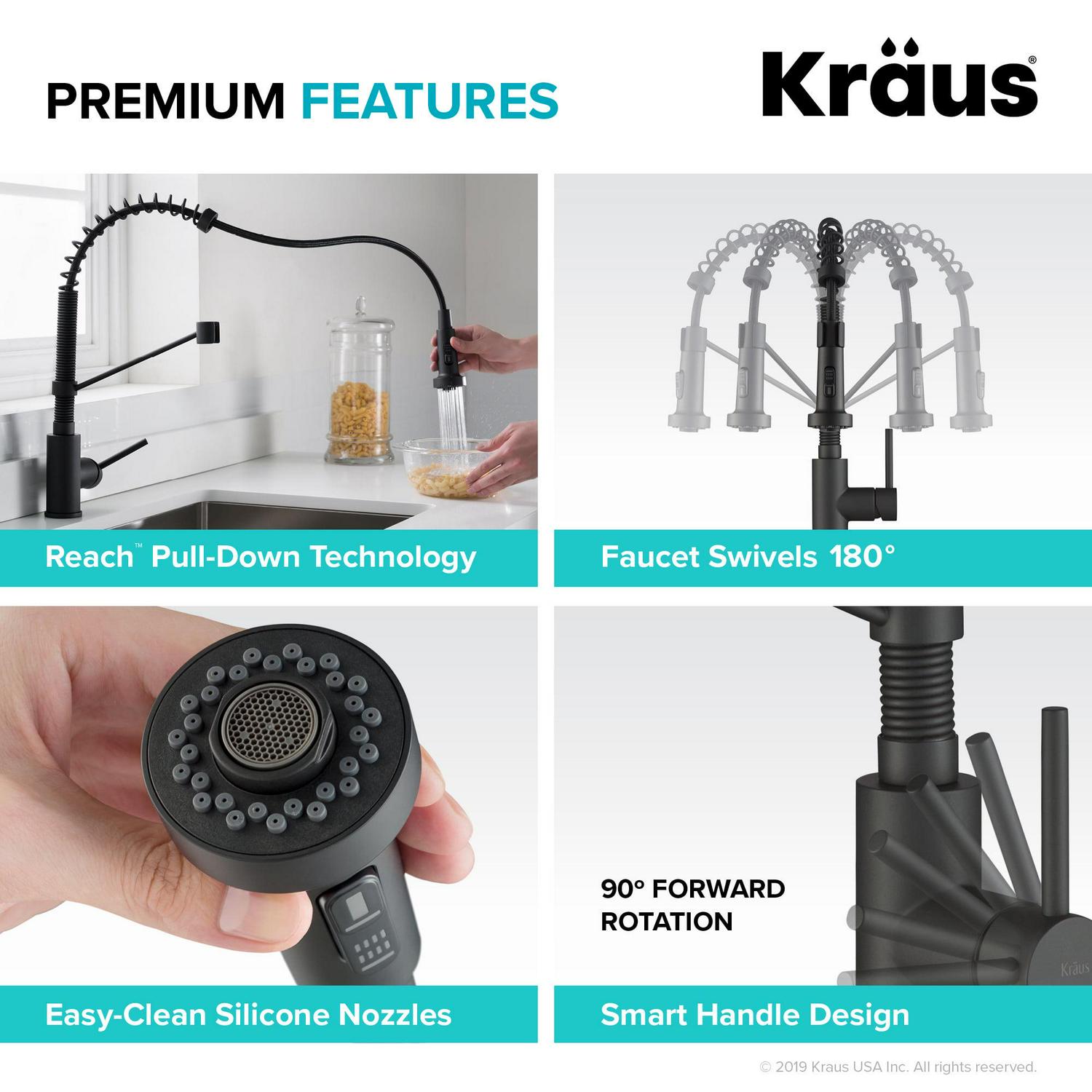 – Professional Style for the Home Kitchen: Featuring an industrial-style open spring spout with an ergonomic pull-down sprayhead