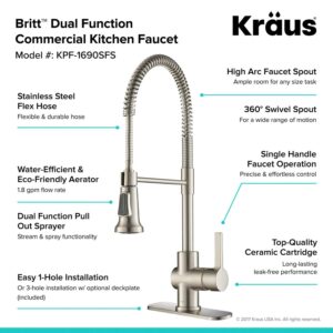 Kraus Britt Single Handle Commercial Kitchen Faucet with Deck Plate and Soap Dispenser in all-Brite Spot Free Stainless Steel Finish