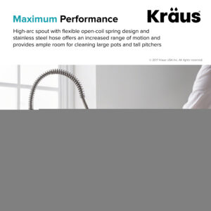 – High-Arc Spout with a flexible spring design and stainless steel hose offers increased mobility for sprayer and provides ample room for cleaning large pots and tall pitchers