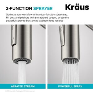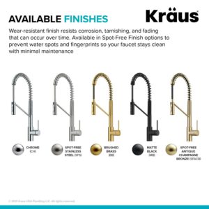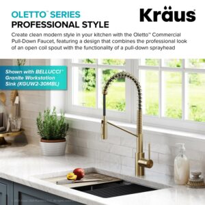 Kraus Oletto Commercial Style Pull-Down Single Handle Kitchen Faucet with QuickDock Top Mount Installation Assembly in Spot Free Antique Champagne Bronze