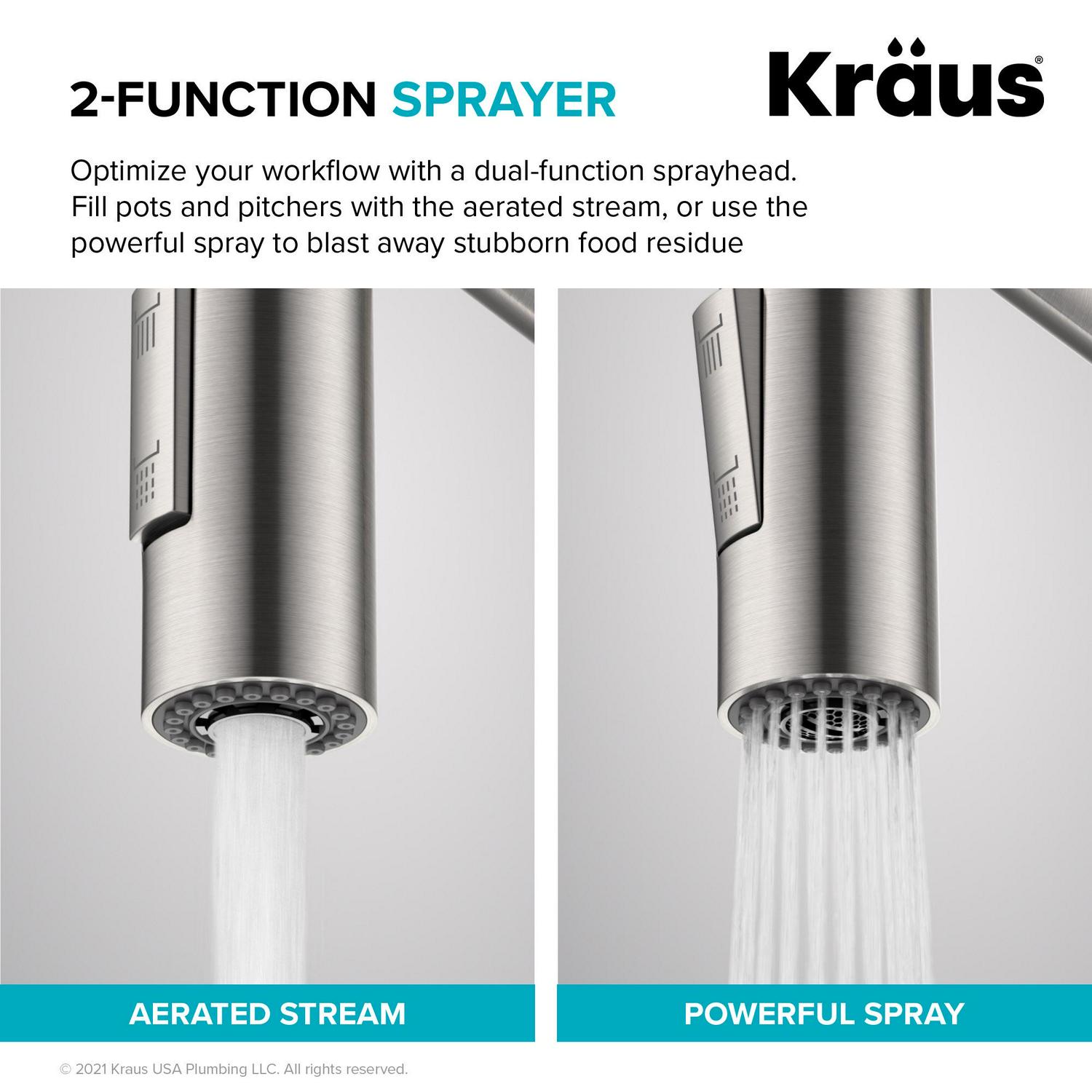 – DUAL FUNCTION: Switch between aerated stream for everyday cleaning and powerful spray for heavy-duty rinsing