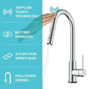 – TAPFLOW TOUCH TECHNOLOGY: Start and stop the flow of water with a simple touch on the faucet spout or body, for greater convenience and a nearly hands-free experience