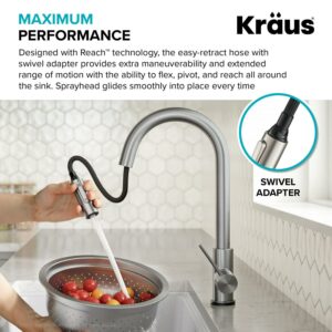 – PULL-DOWN SPRAYHEAD with Reach Technology offers maximum manoeuvrability, with an easy-retract hose and SWIVEL ADAPTER that enable a full range of motion so you can flex, pivot, and reach all around the sink