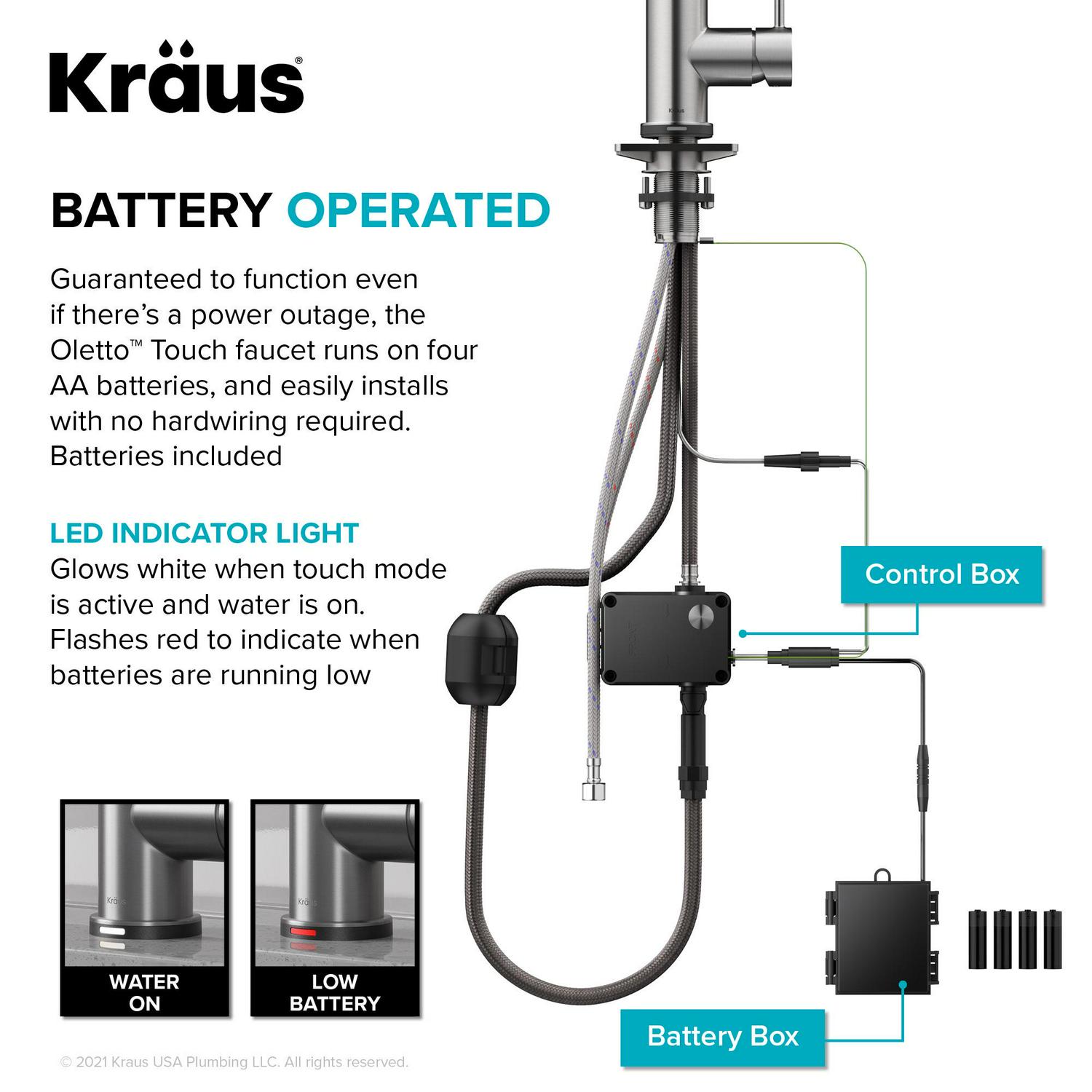 – BATTERY OPERATED Faucet runs on 4 x AA batteries and is easy to install with no hardwiring required Touch function is guaranteed to work even during a power outage