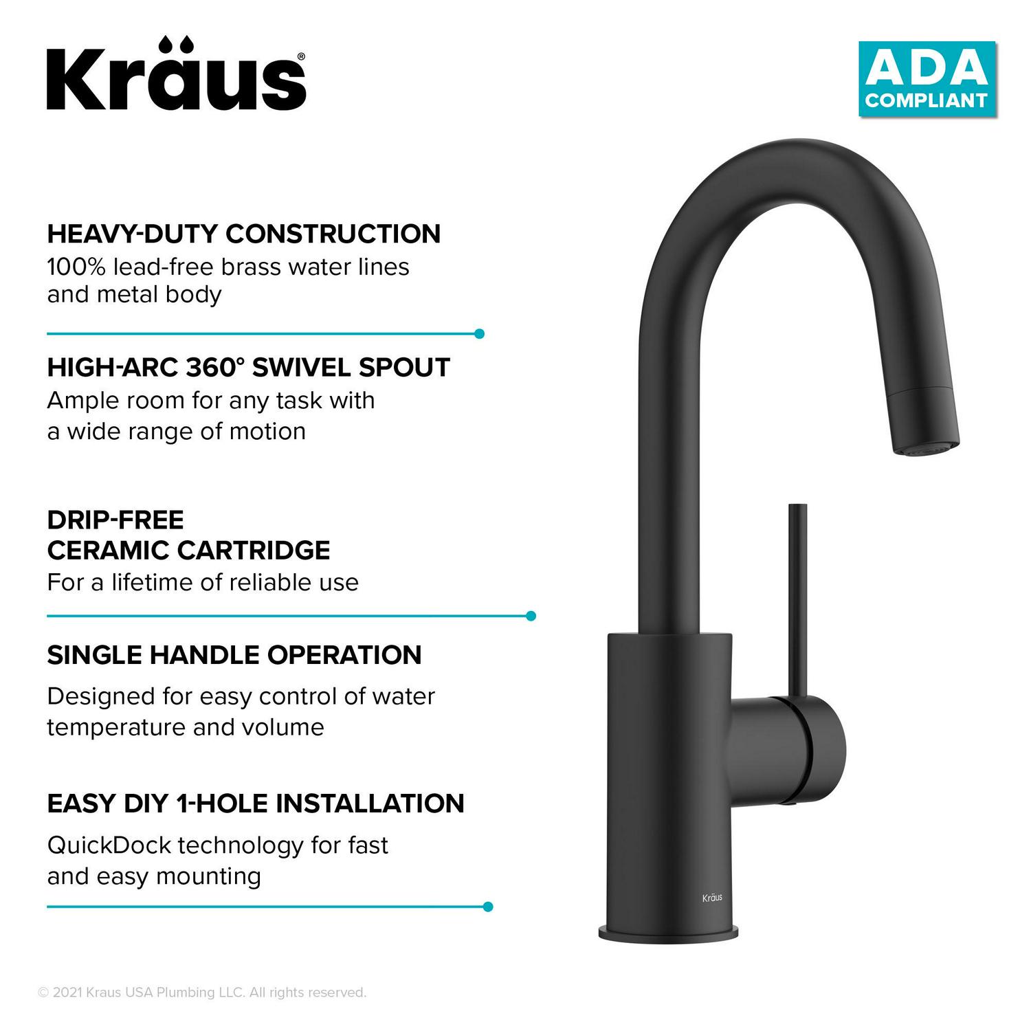 – SINGLE HOLE INSTALLATION allows you to install this faucet with any bar or kitchen sink on the market