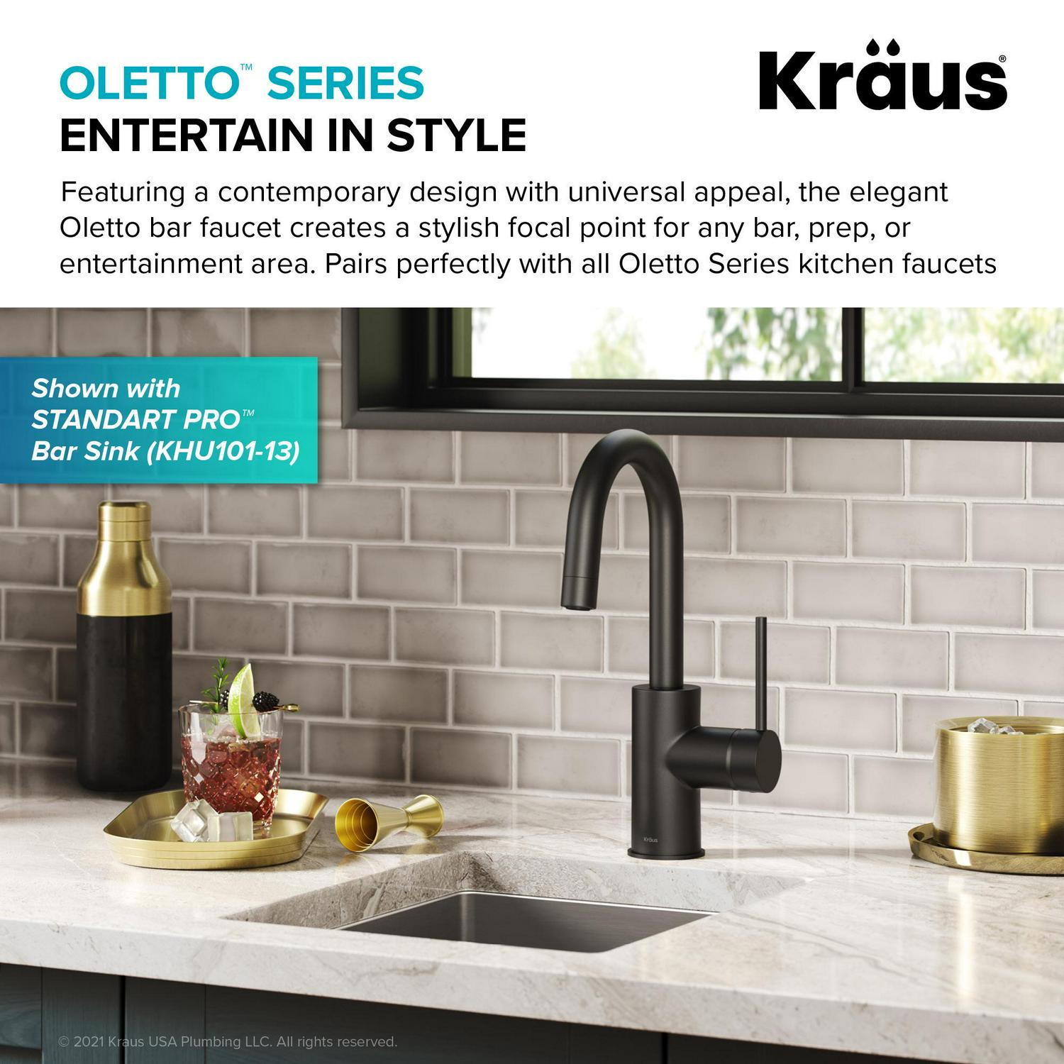 – UNIVERSAL DESIGN: The Oletto Bar Faucet has a sleek contemporary design that makes a stylish focal point for any bar, prep, or entertainment area