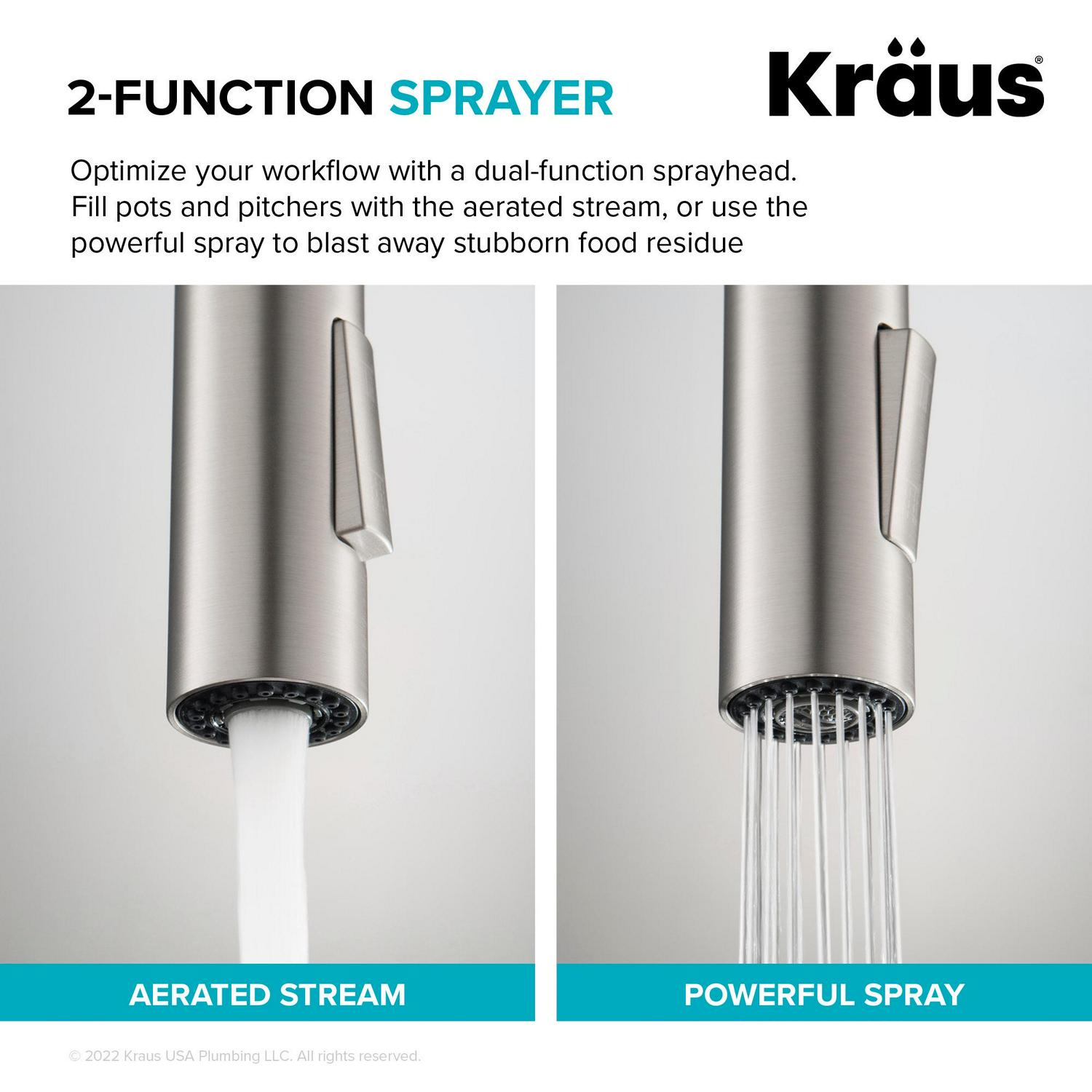 – Dual Function Sprayer: Switch between an aerated stream for everyday cleaning and a powerful spray for heavy-duty rinsing