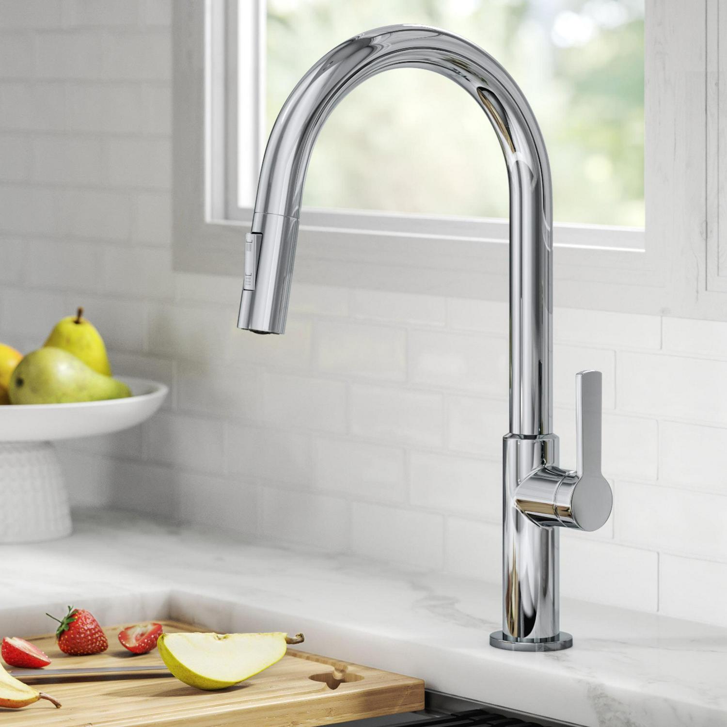 KRAUS Oletto Single Handle Pull-Down Kitchen Faucet in Chrome