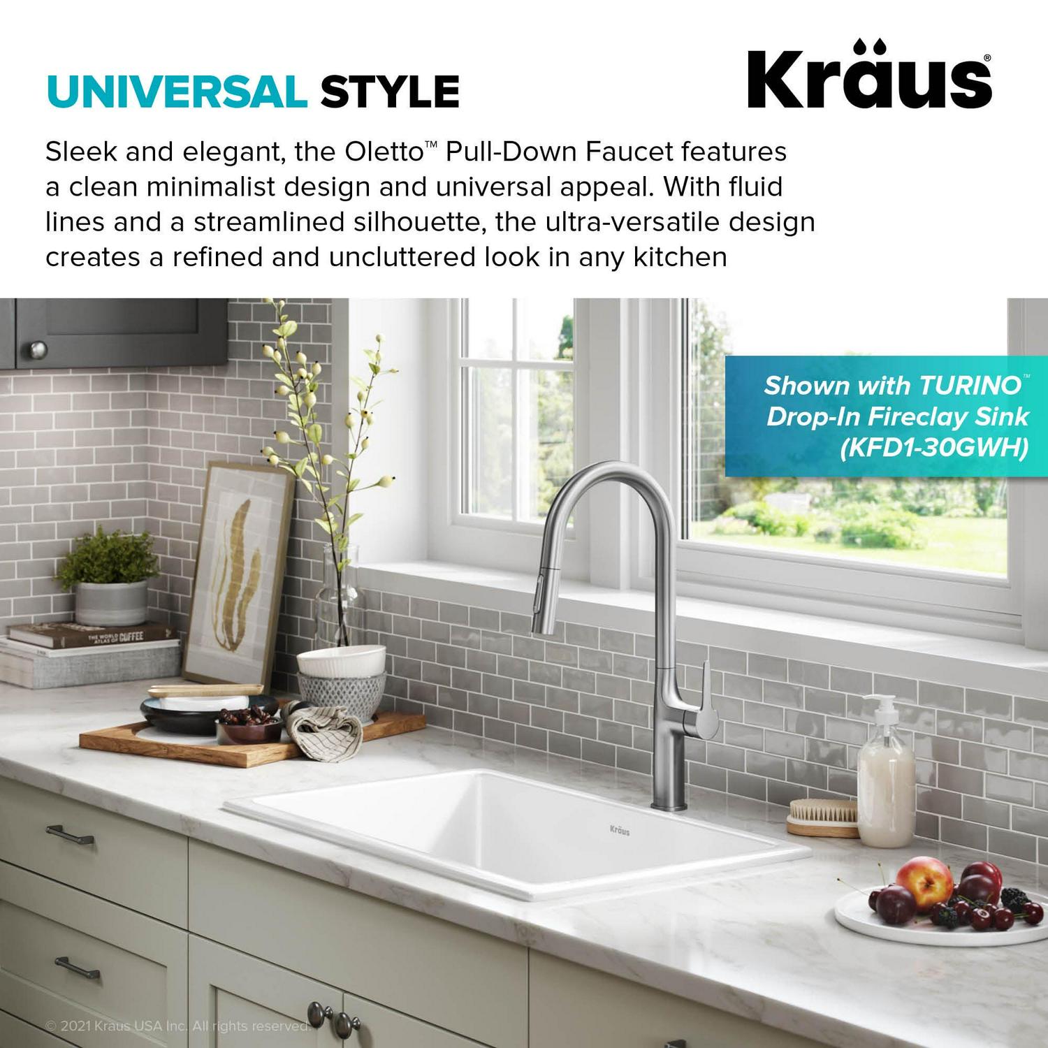 – ELEGANT UNIVERSAL DESIGN: The Oletto Faucet Series features perfectly balanced designs that create an instant focal point in any kitchen or laundry room