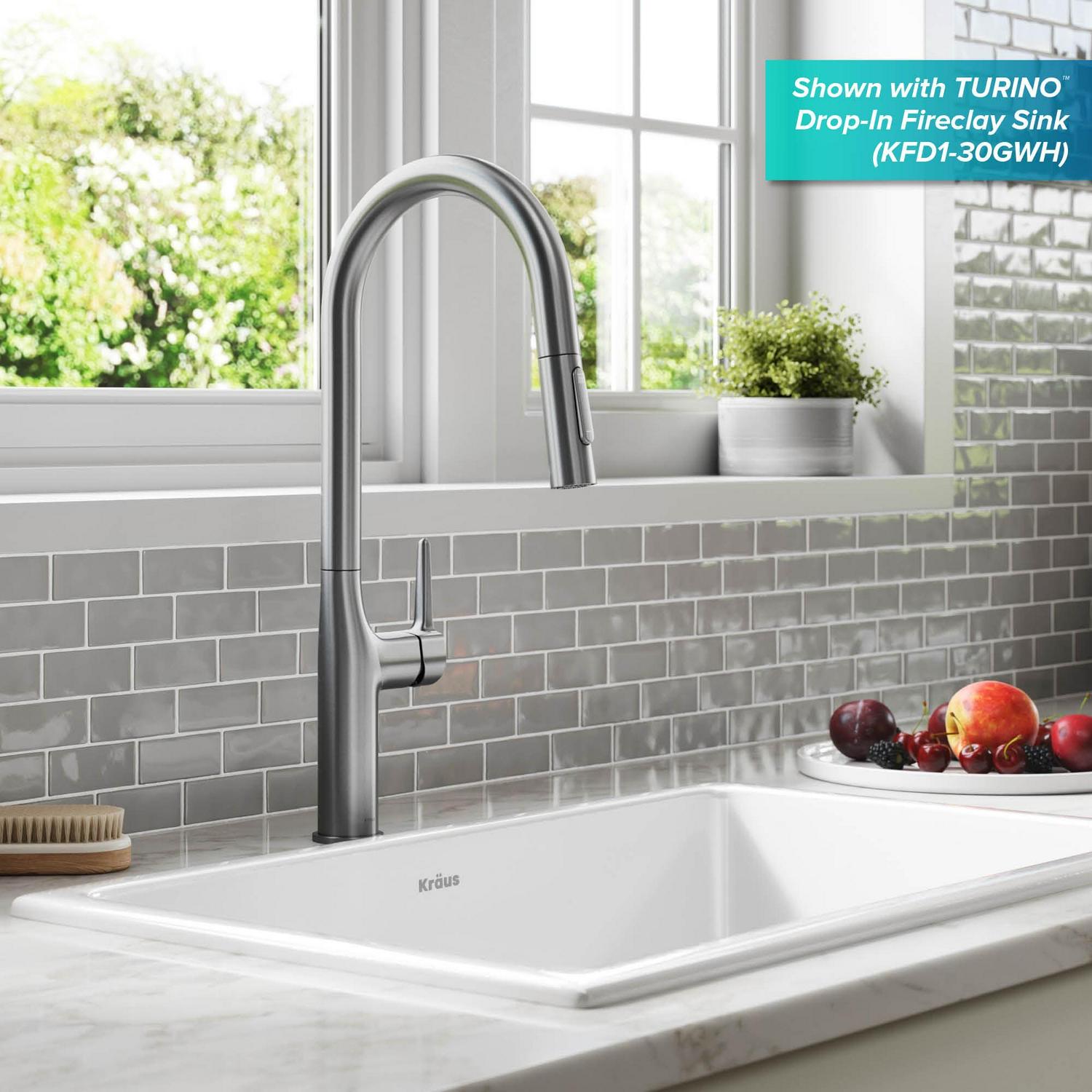 Kraus Oletto Tall Modern Pull-Down Single Handle Kitchen Faucet in Spot Free Stainless Steel