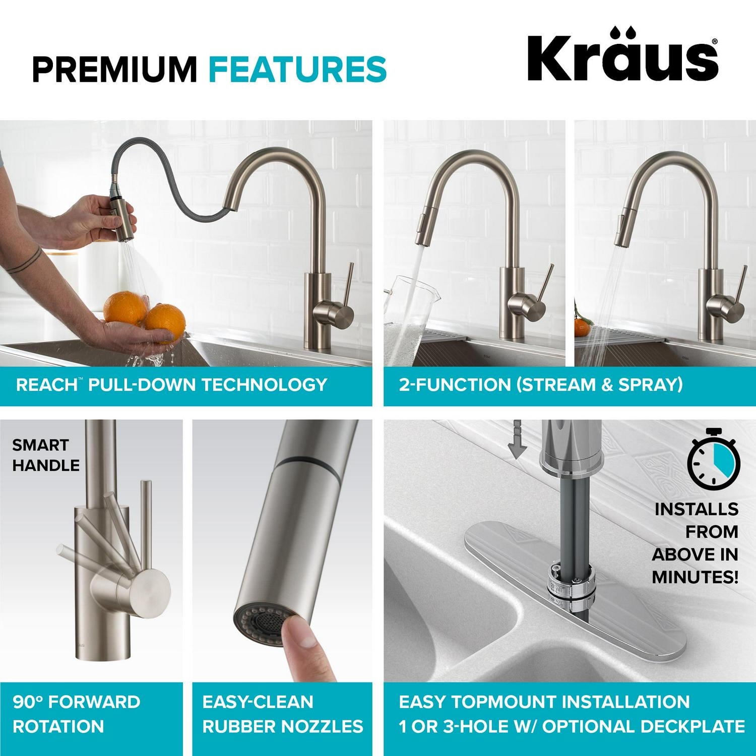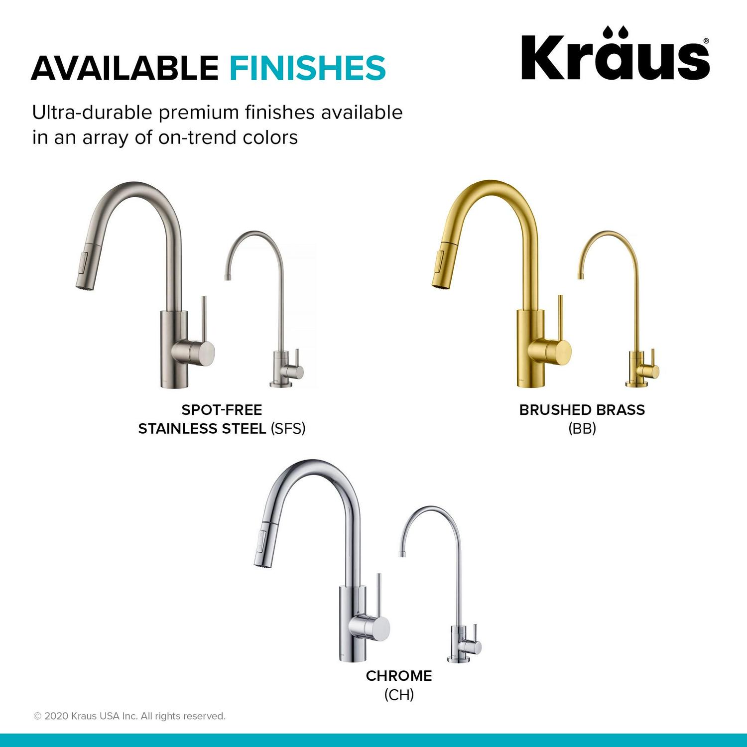 – SPOT-FREE FINISH: Spot-free all-Brite stainless steel finish prevents water spots and fingerprints and requires less cleaning. Kraus finishes are corrosion-resistant and will not fade over time