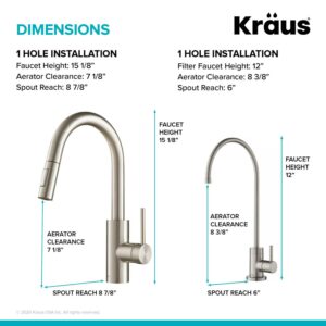 Kraus Oletto Pull-Down Kitchen Faucet and Purita Water Filter Faucet Combo in Spot Free Stainless Steel