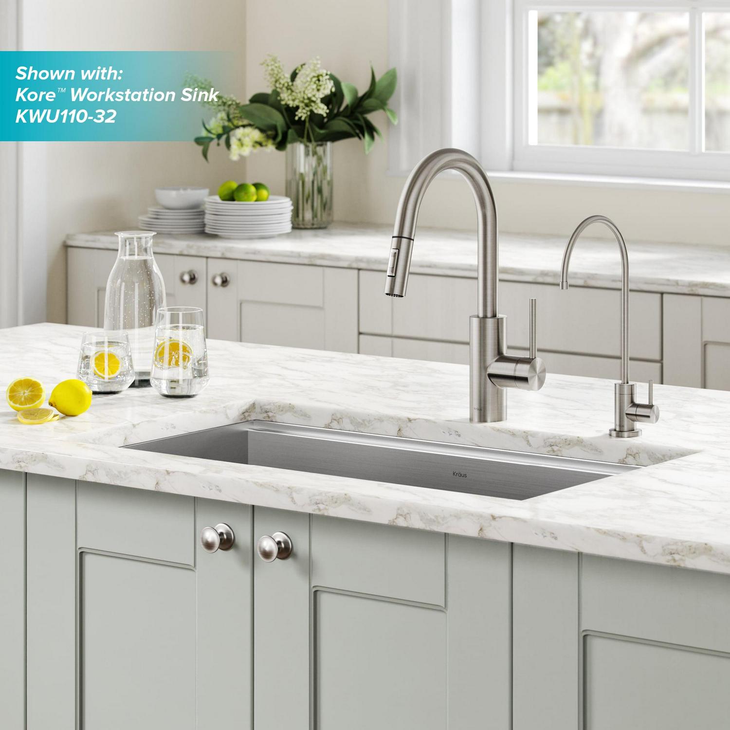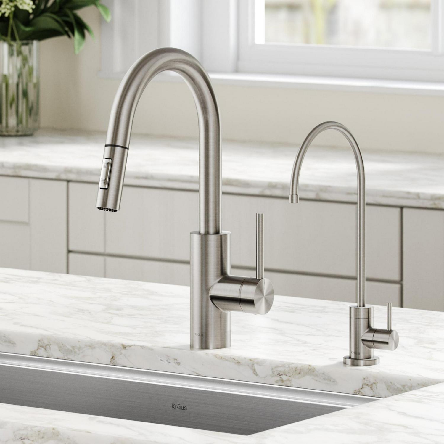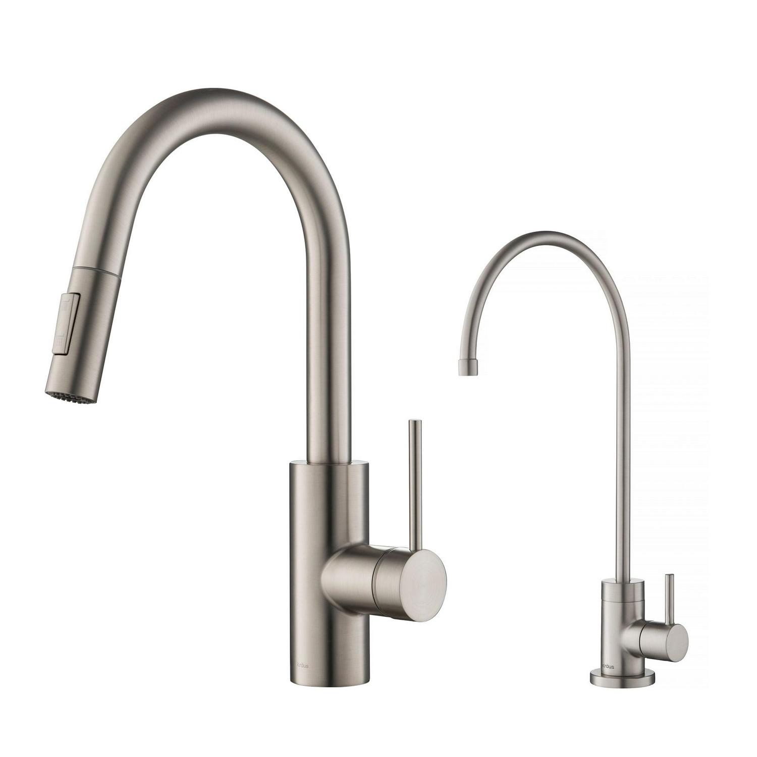KRAUS Olettoa c Pull-Down Kitchen Faucet and Puritaa c Water Filter Faucet Combo in Spot Free Stainless Steel