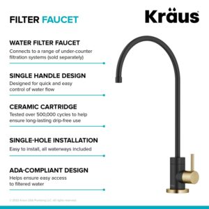 KRAUS Purita Single Handle Drinking Water Filter Faucet for Reverse Osmosis or Water Filtration System in Brushed Brass/Matte Black