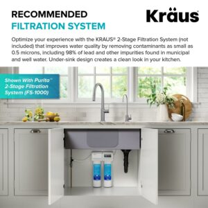 – Recommended Filtration System: Kraus 2-Stage Carbon Block Under-Sink Water Filtration System FS-1000 (sold separately) that improves water quality by removing contaminants as small as 0.5 microns – helps remove lead, select pharmaceuticals, VOCs, chlorine odor and taste, and other impurities