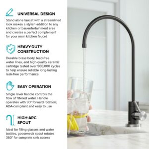– Contemporary Look: Stand-alone filter faucet with streamlined design creates a perfect complement for main kitchen faucet of any style, adding an elegant touch to any kitchen or bar/entertainment area
