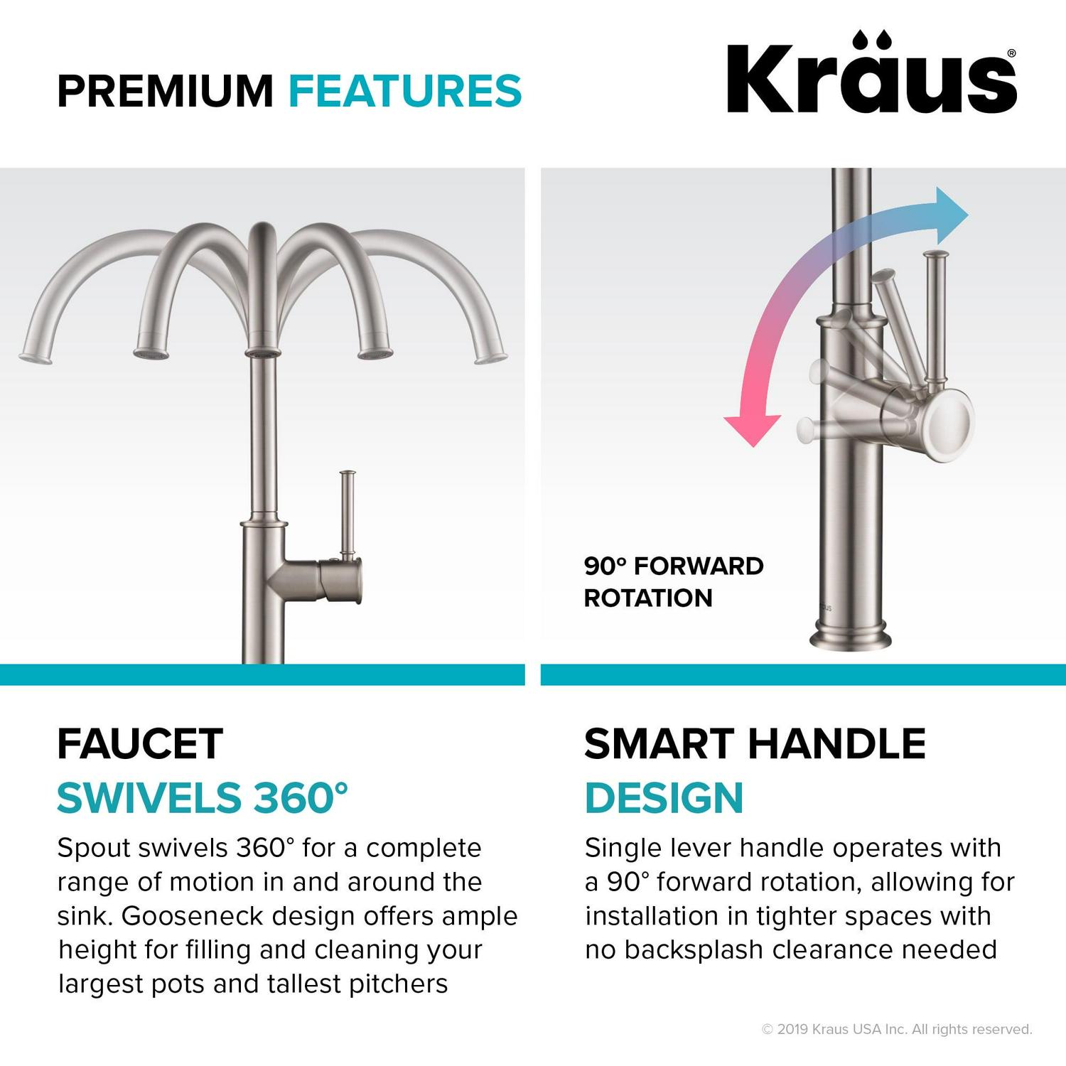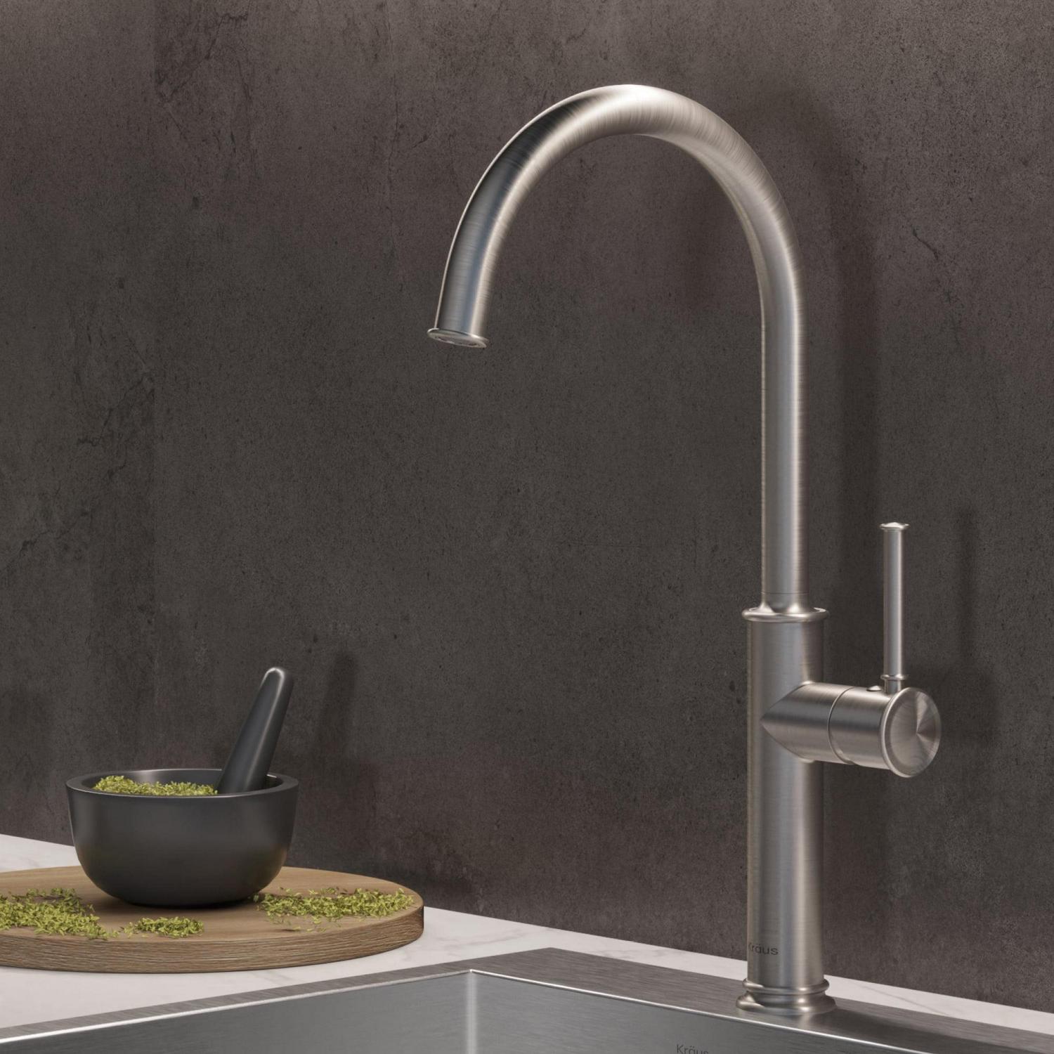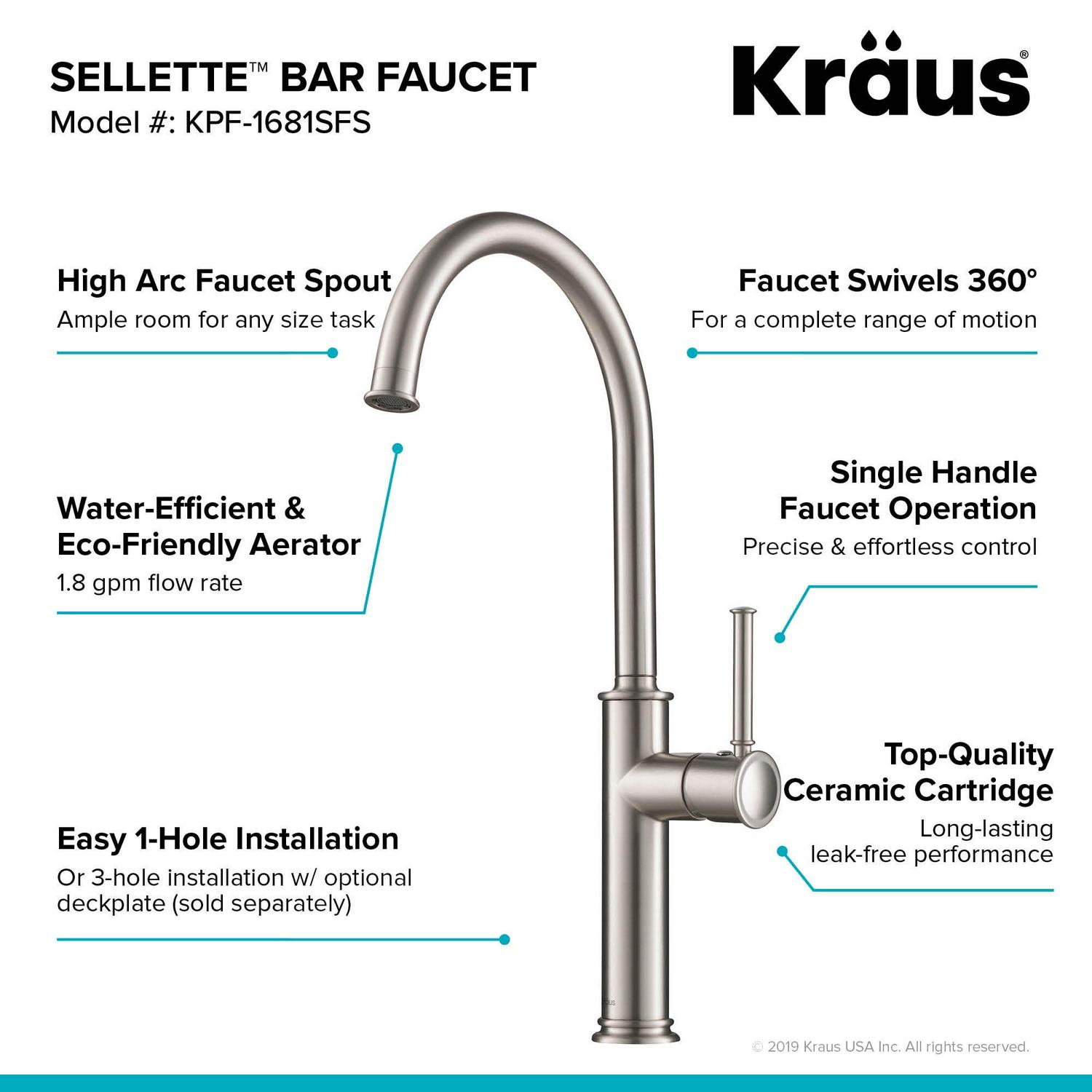 Bring beautifully simple style to your kitchen with the streamlined high-arc design of the KRAUS Sellette bar/prep faucet. Choose from 3 flawless rust-resistant finishes to complement your kitchen décor and create a coordinated look.
