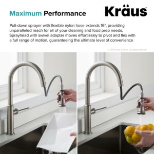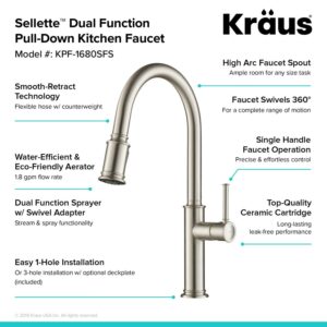 Kraus Sellette Single Handle Pull Down Kitchen Faucet with Deck Plate and Soap Dispenser in all-Brite Spot Free Stainless Steel Finish