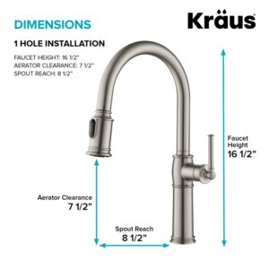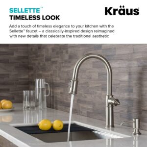 Kraus Sellettea c Traditional Single Handle Pull-Down Kitchen Faucet with Soap Dispenser and Deck Plate in Spot Free Stainless Steel
