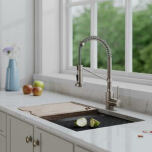 – Commercial Pull-Down Design: Creates a distinctive professional look with an industrial open-coil spout.