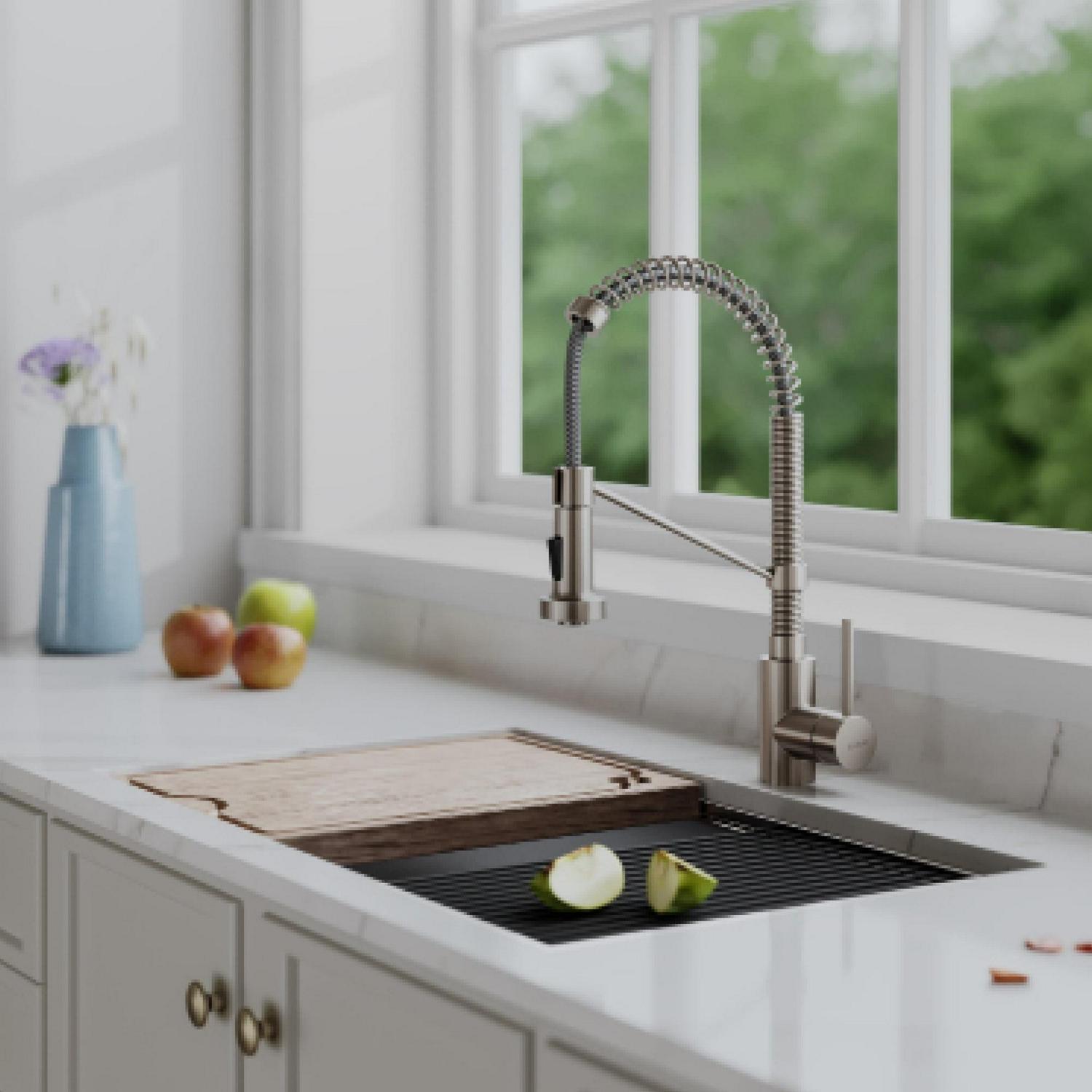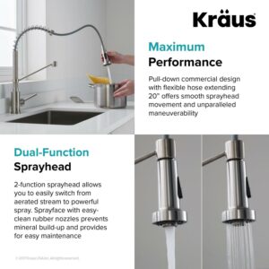 Kraus Spot Free Boldena c 18-Inch Commercial Kitchen Faucet with Dual Function Pull-Down Sprayhead in all-Britea c Stainless Steel Finish