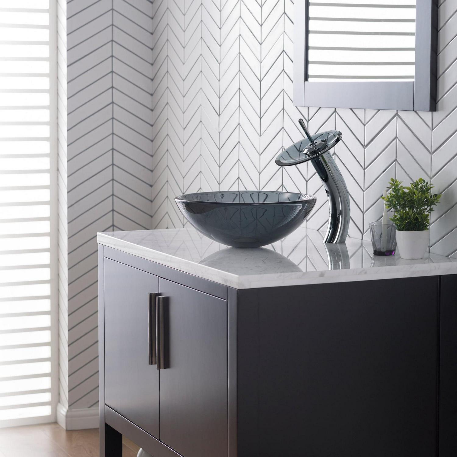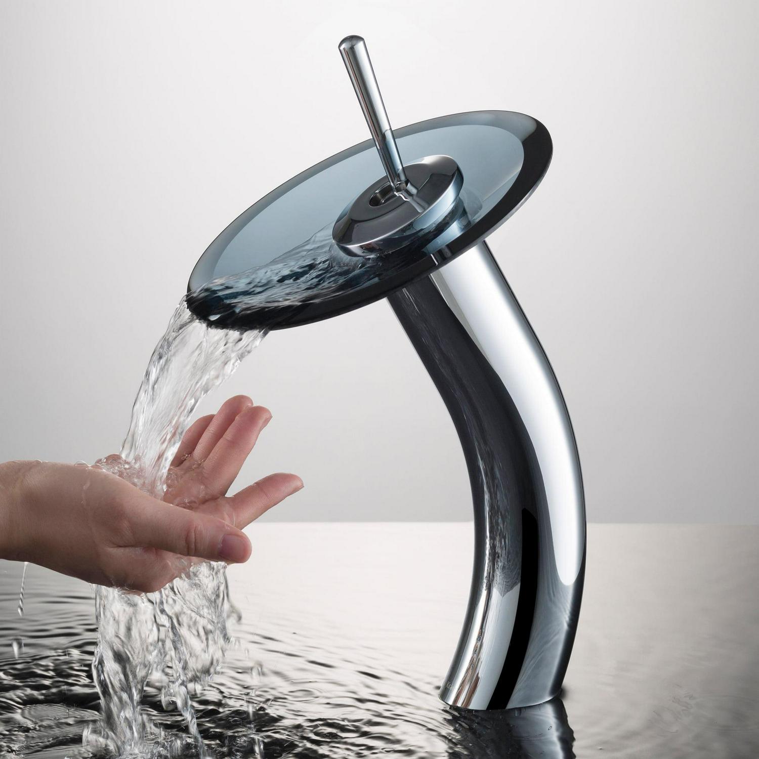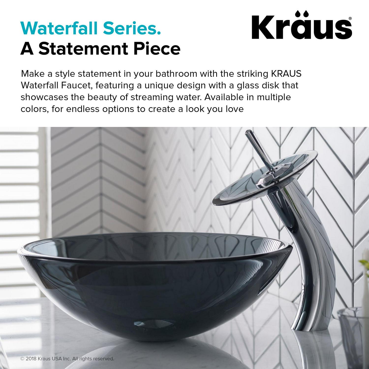 Make a style statement in your bathroom with the stunning KRAUS waterfall faucet, featuring a distinctive glass disk that showcases the beauty of streaming water. Available in multiple colors for endless options to create a look you love