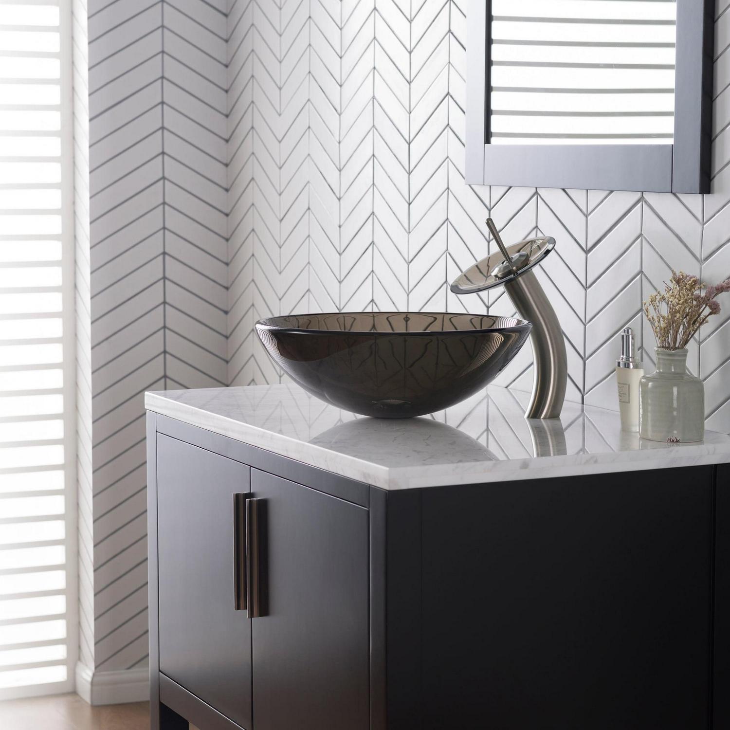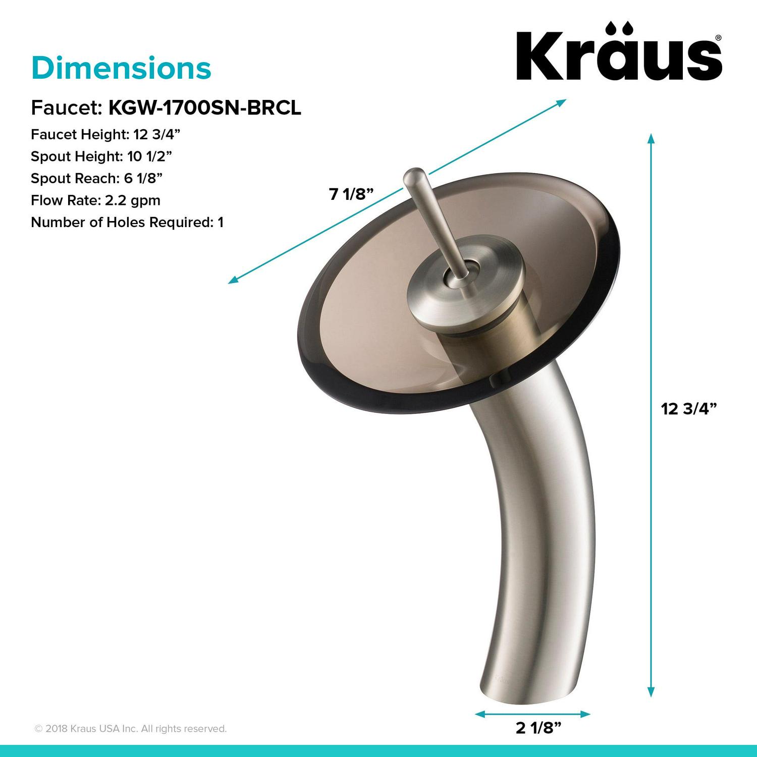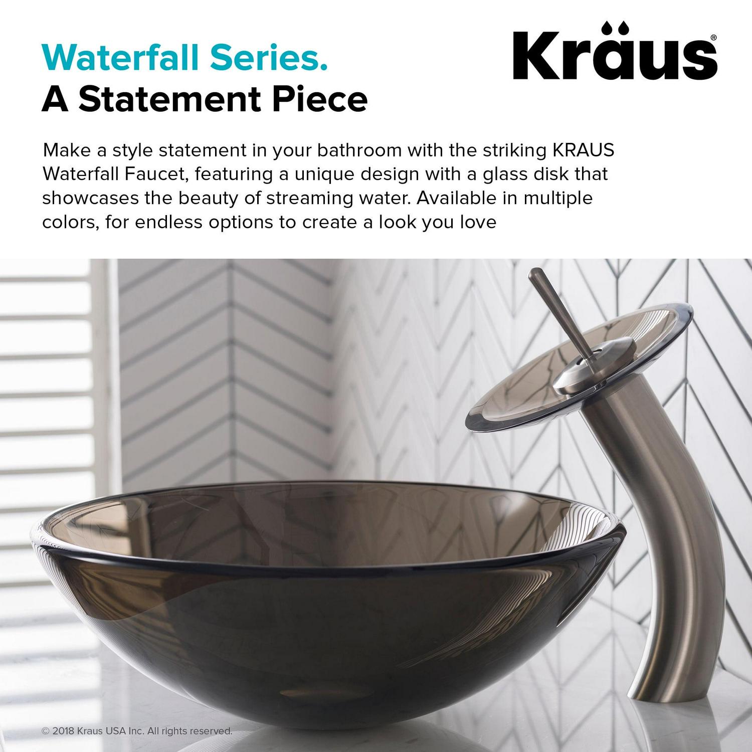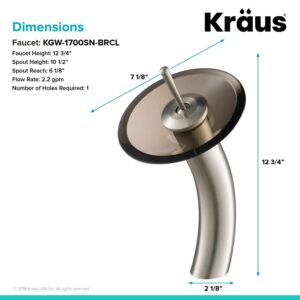 Kraus Tall Waterfall Bathroom Faucet for Vessel Sink with Clear Brown Glass Disk, Satin Nickel Finish