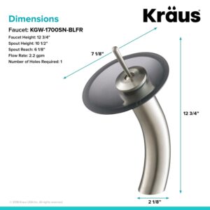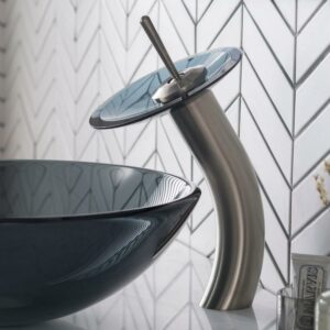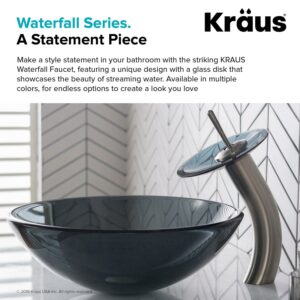 KRAUS Tall Waterfall Bathroom Faucet for Vessel Sink with Frosted Black Glass Disk, Satin Nickel Finish