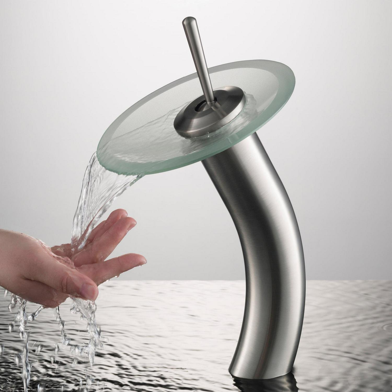 Make a style statement in your bathroom with the stunning KRAUS waterfall faucet, featuring a distinctive glass disk that showcases the beauty of streaming water. Available in multiple colors for endless options to create a look you love