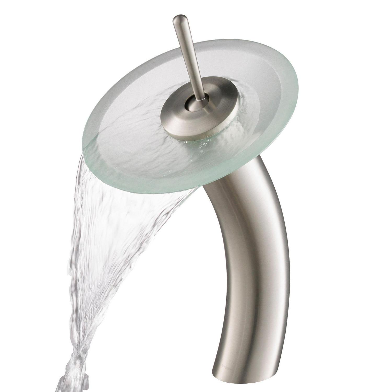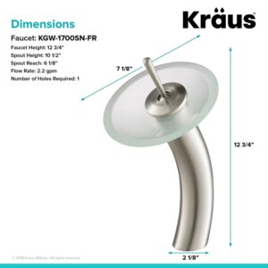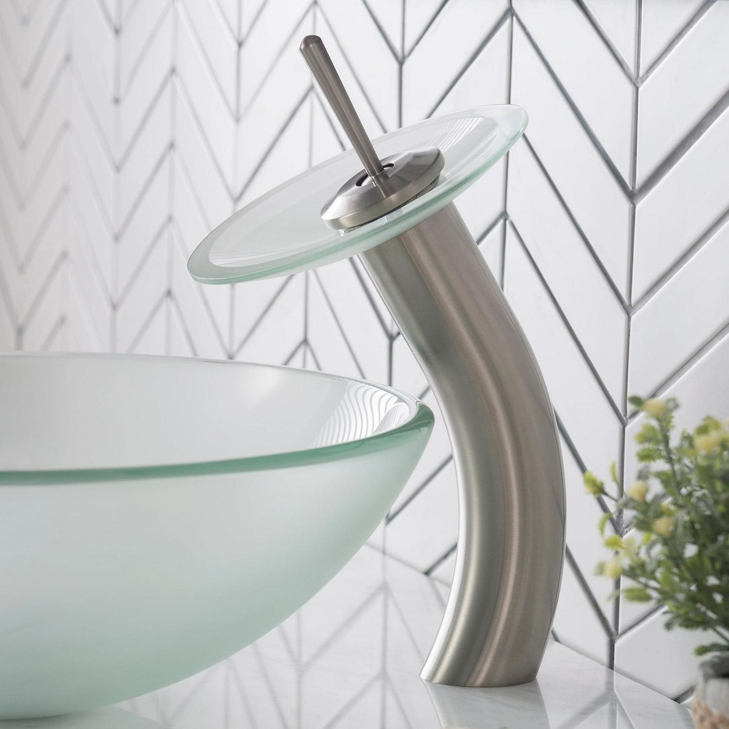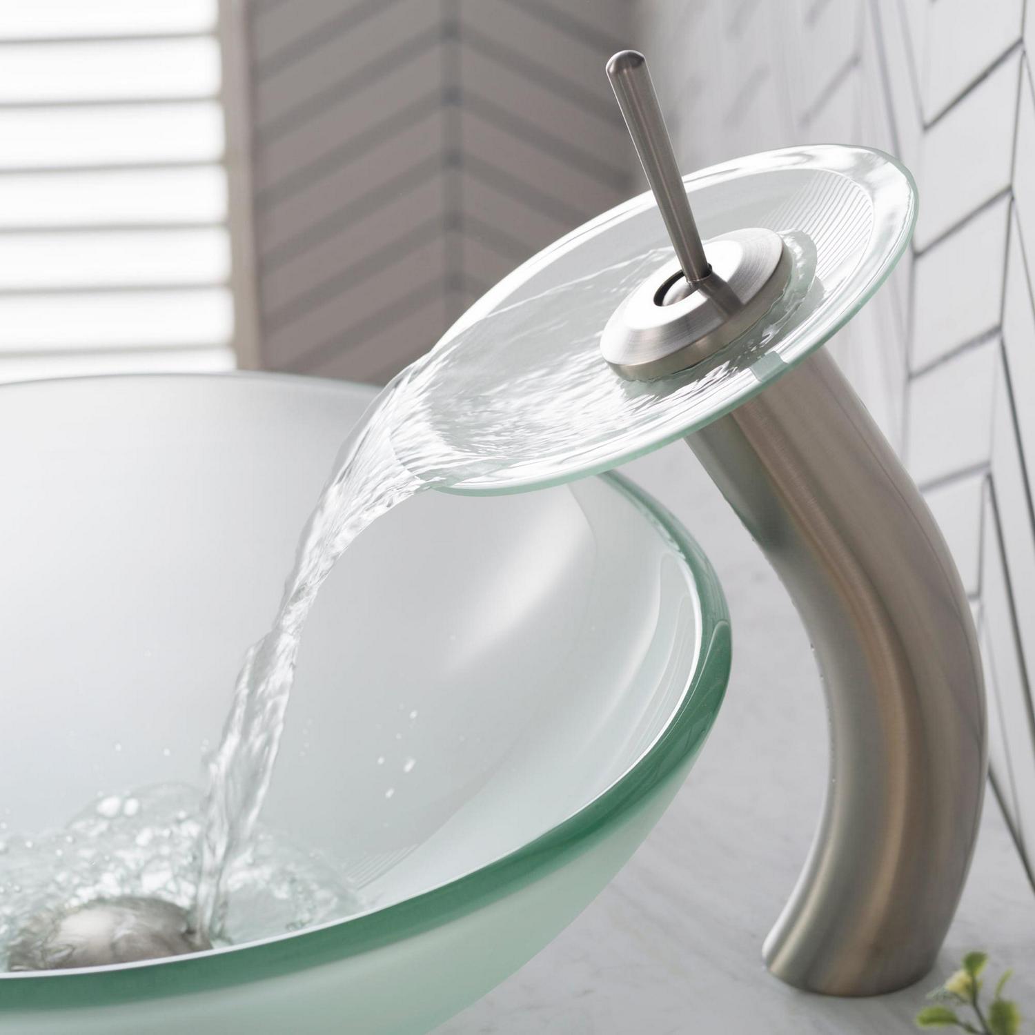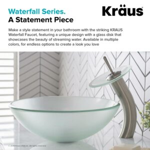 KRAUS Tall Waterfall Bathroom Faucet for Vessel Sink with Frosted Glass Disk, Satin Nickel Finish