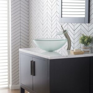 – A Stylish Centerpiece: Vessel faucet with tempered glass disk makes an eye-catching design element for any bathroom décor