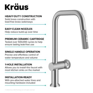 KRAUS Urbix Industrial Pull-Down Single Handle Kitchen Faucet in Spot-Free Stainless Steel