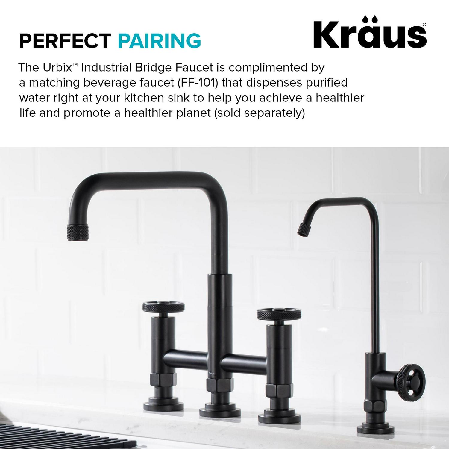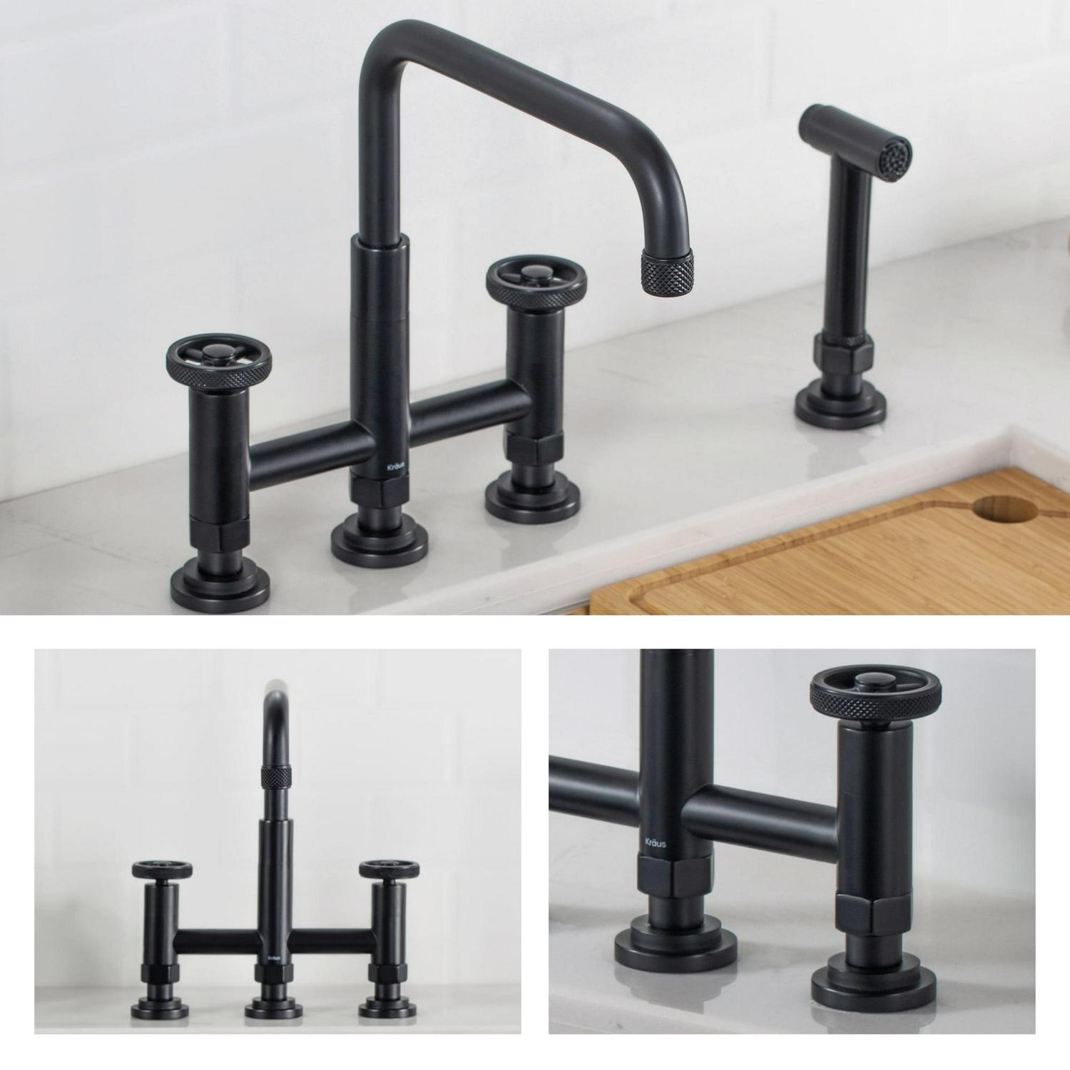 Kraus Urbixa c Industrial Bridge Kitchen Faucet with Side Sprayer in Matte Black