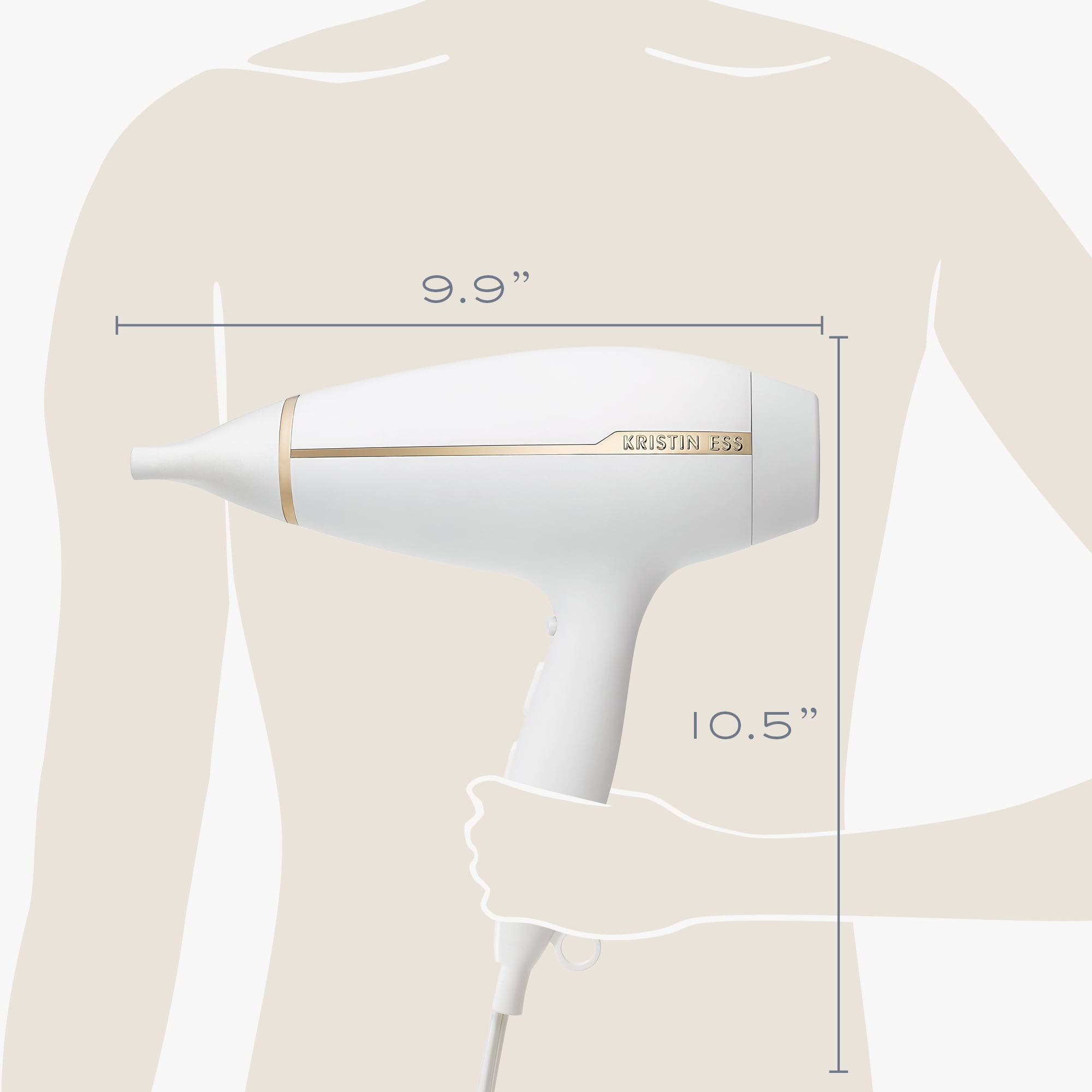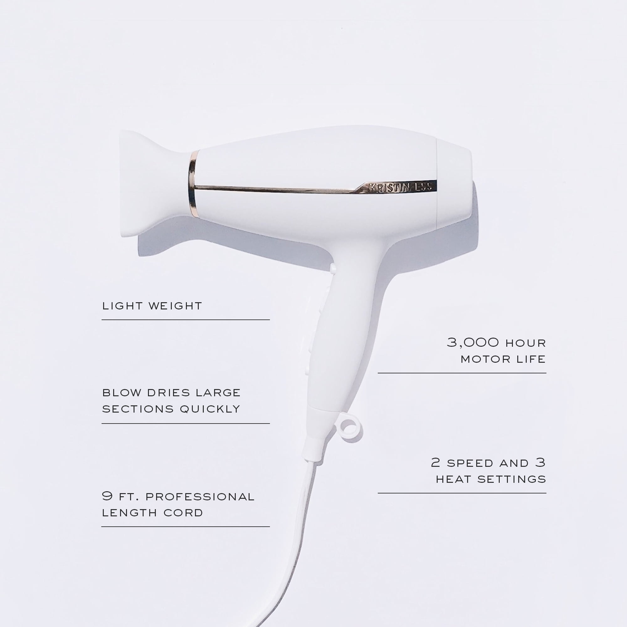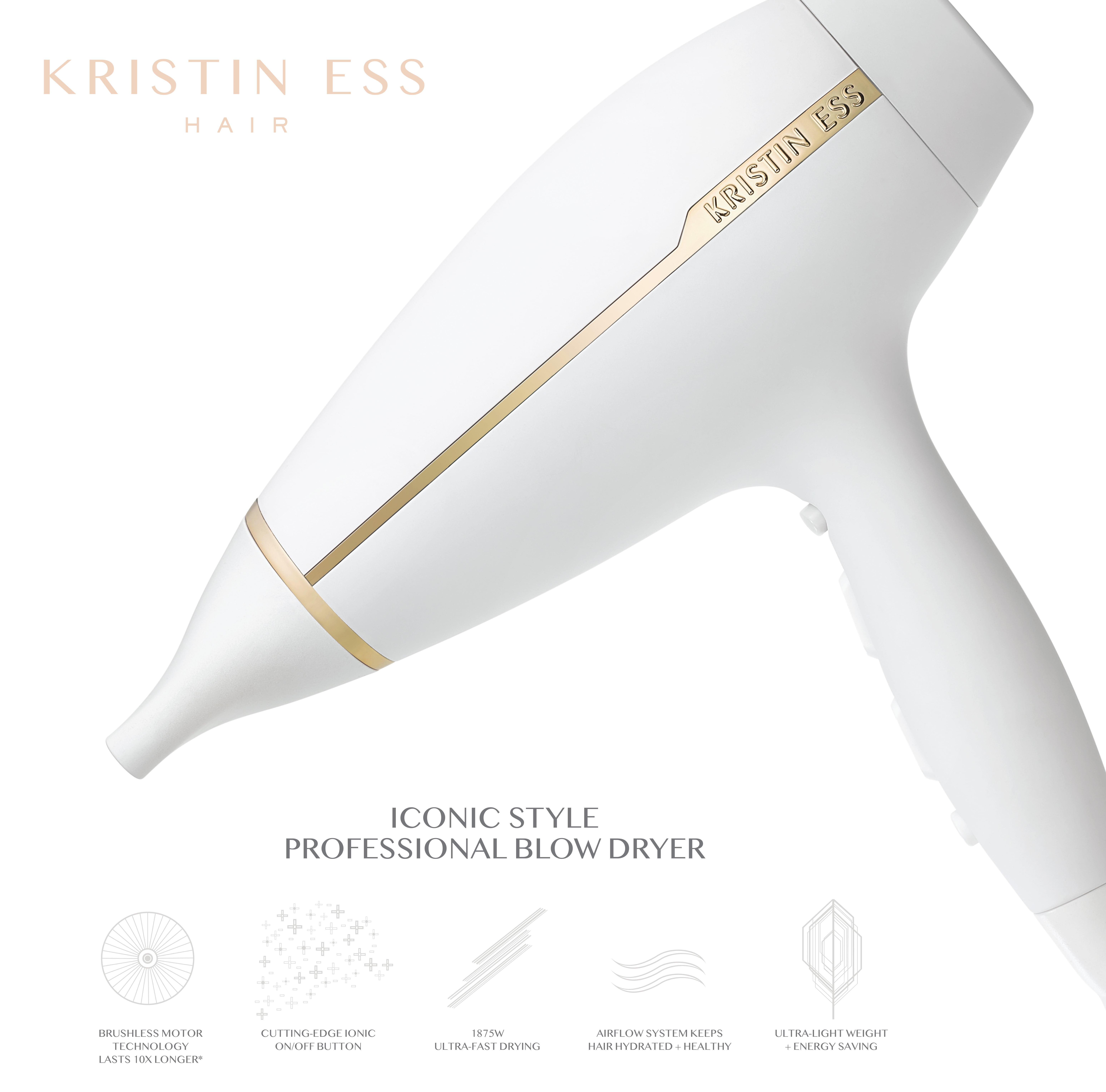 The need for affordable, professional hair tools has never been greater, and now the wait is over! The Ionic Style Professional Blow Dryer from Kristin Ess Hair is a lightweight, powerful blow dryer that gets the job done quickly and efficiently while keeping your hair healthy and hydrated. This blow dryer features Kristin’s favorite ratios of heat to wind, customizable ionic options, and a cool shot button to set your favorite style.